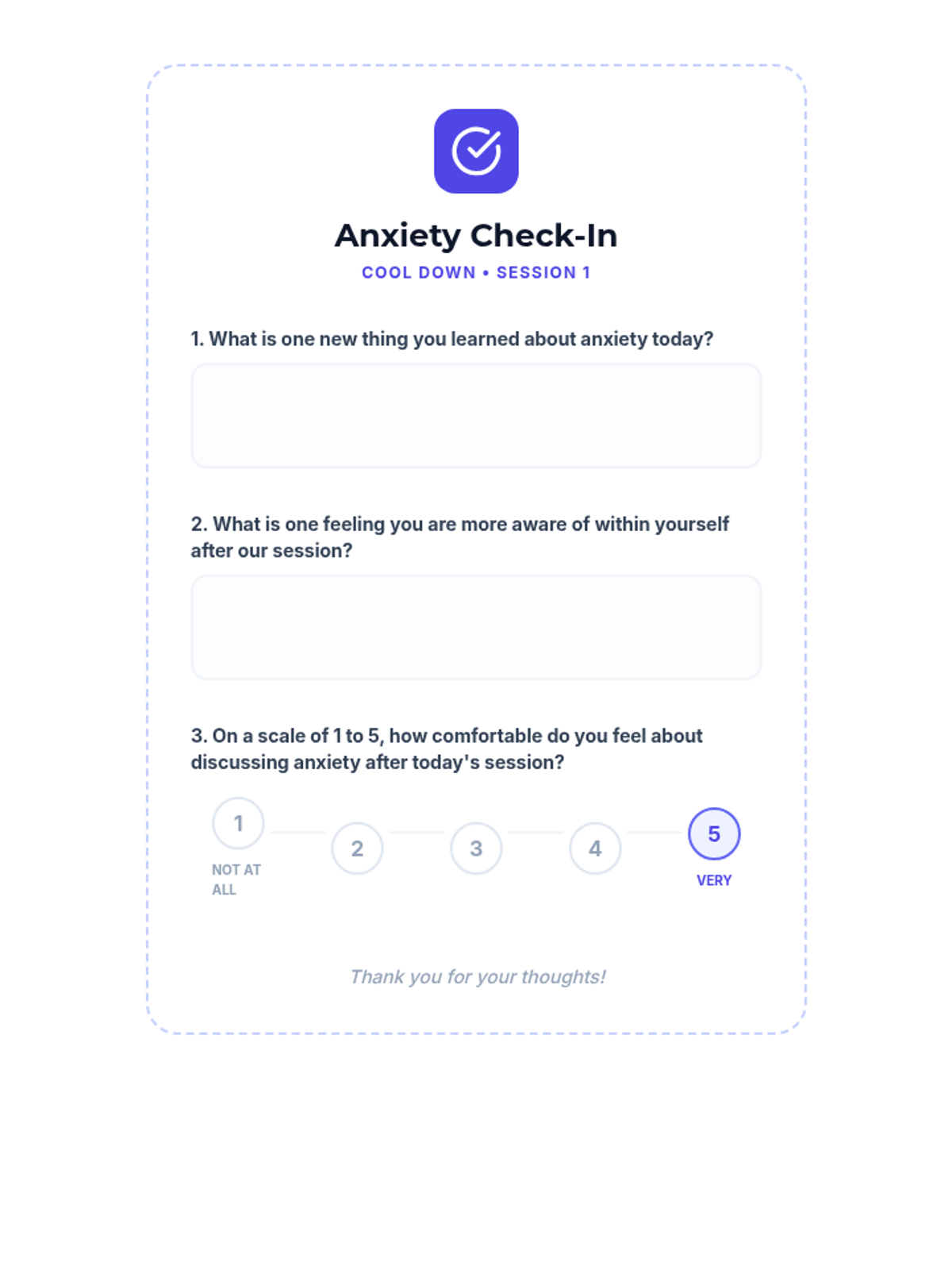A series of lessons designed to equip students with CBT-based tools to manage social anxiety, improve social skills, and increase engagement in school environments.