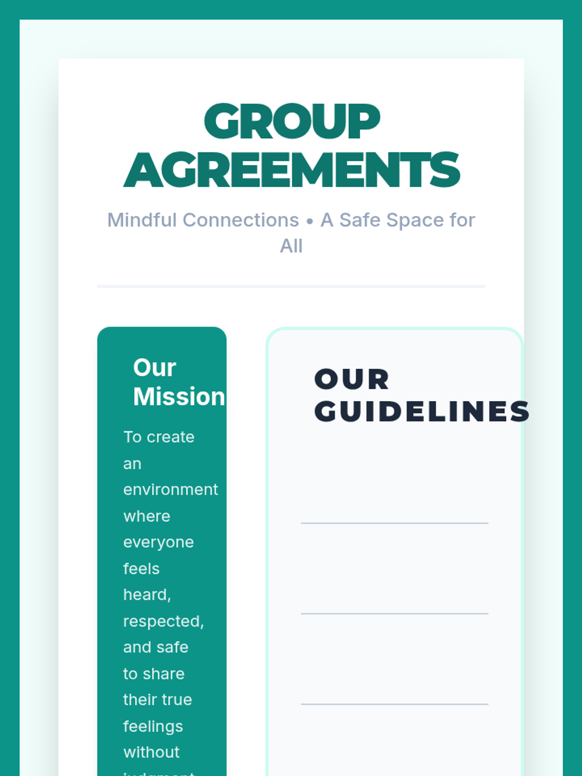 A comprehensive 6-week individual program designed to teach emotional regulation and stress management to a 15-year-old girl with autism using trauma-informed strategies. Each session introduces a unique coping skill, from deep breathing to journaling and physical movement.