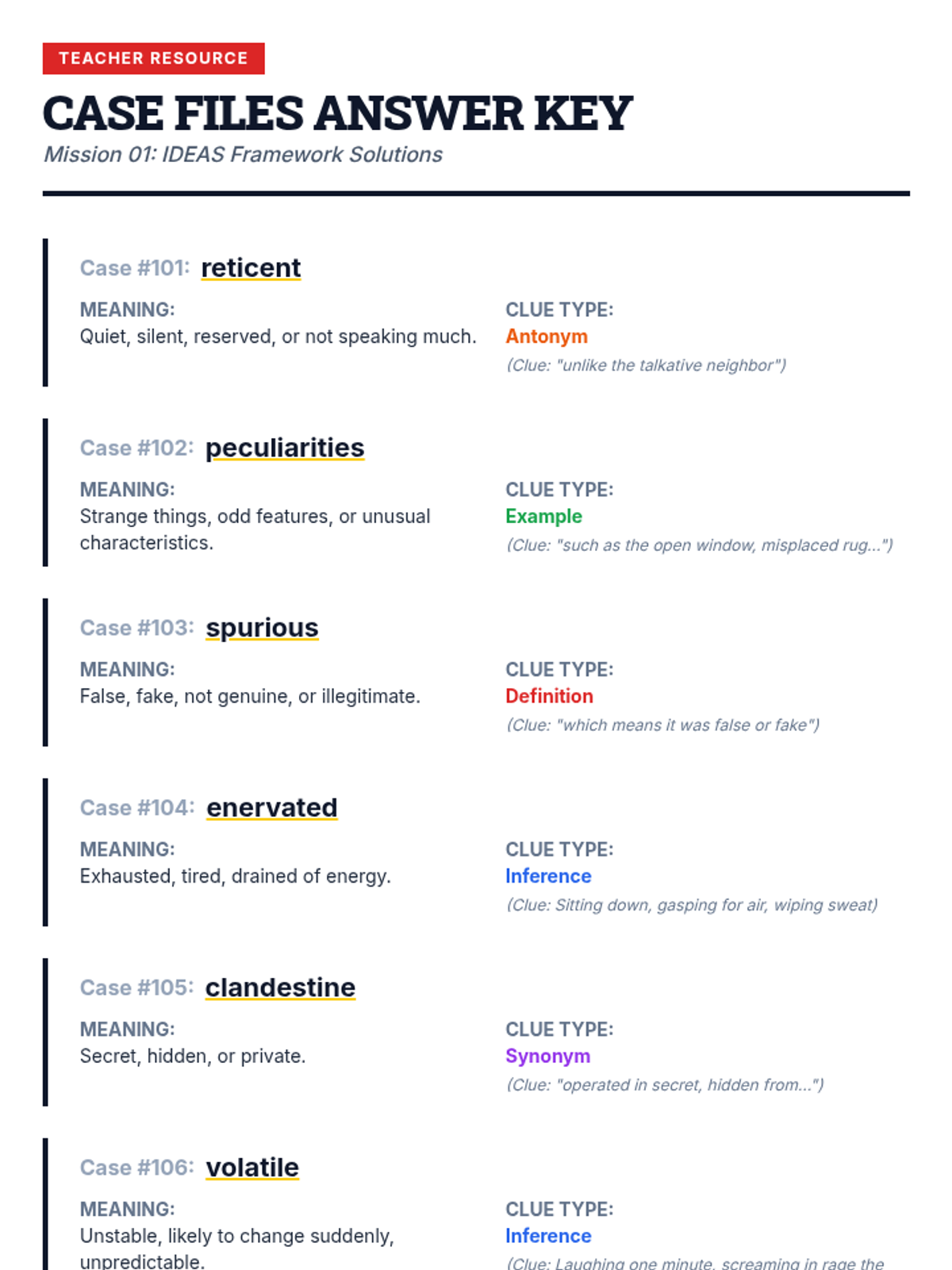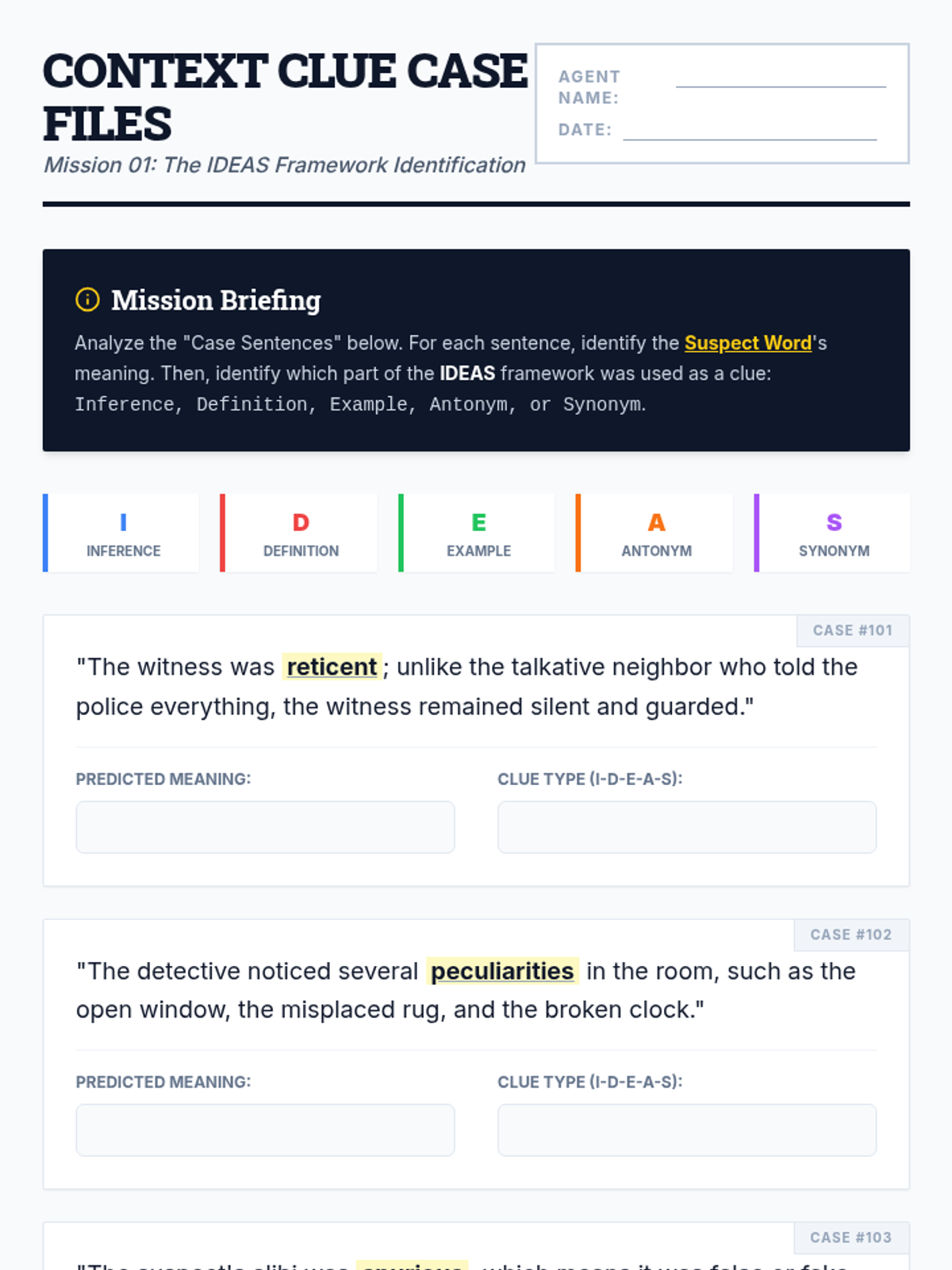 This sequence transforms 9th-grade students into linguistic detectives, focusing on strategies to decipher unknown vocabulary using context clues and morphology. Students move from identifying specific clue types to applying strategies in authentic news media and a culminating escape room simulation.