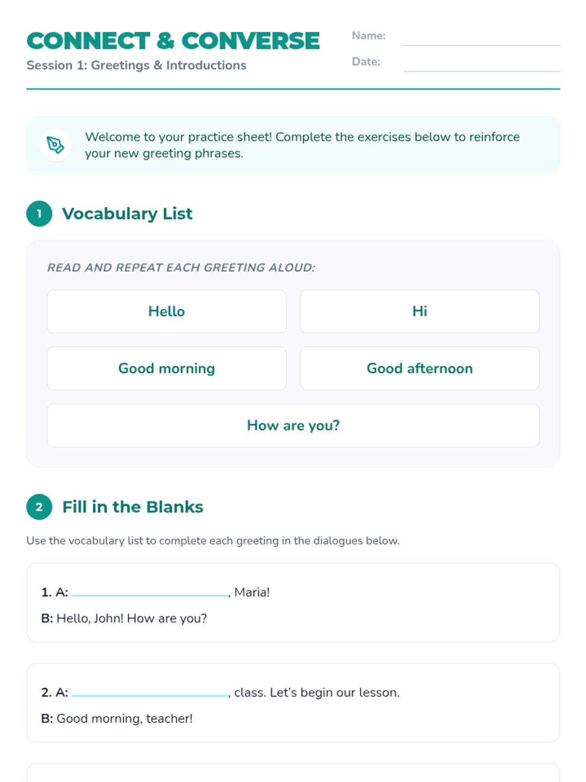 A three-session introductory ESL sequence designed for Spanish-speaking teenagers to build confidence and community through interactive ice-breakers and guided conversations.