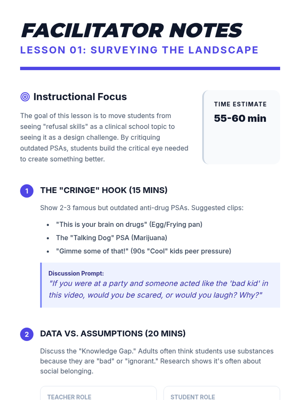 A project-based sequence where 9th-grade students design peer-led advocacy campaigns focused on realistic substance refusal strategies, moving from data collection to creative resource production.