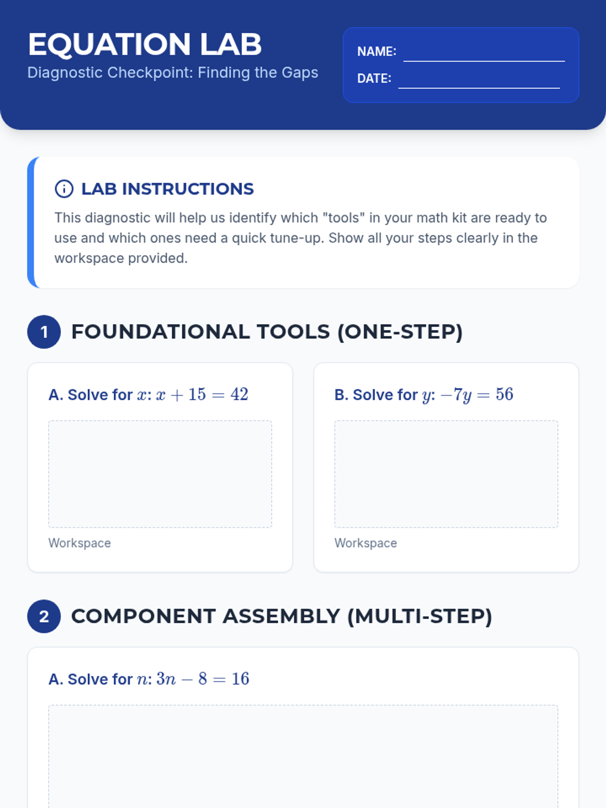 A comprehensive Tier 2 intervention sequence for high school Algebra students focused on solving and graphing linear equations and inequalities. This sequence uses an architectural 'blueprint' theme to help students build conceptual understanding and procedural fluency while addressing common misconceptions.