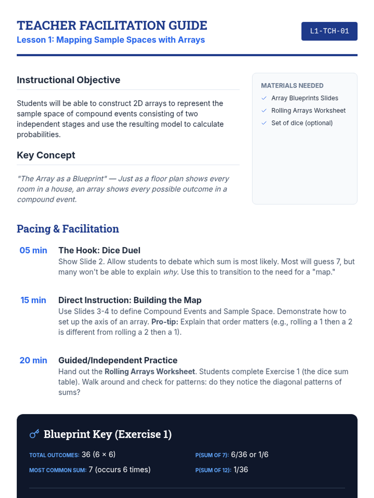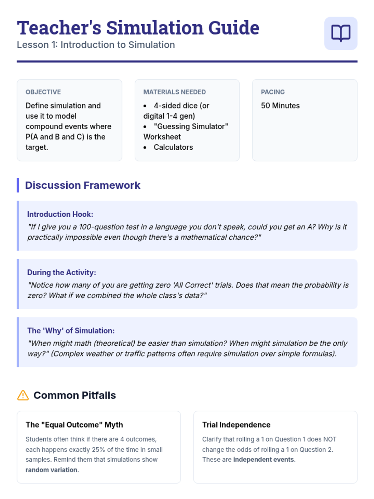 A targeted intervention sequence focused on compound probability, designed for small groups to master sample space construction and simulations.