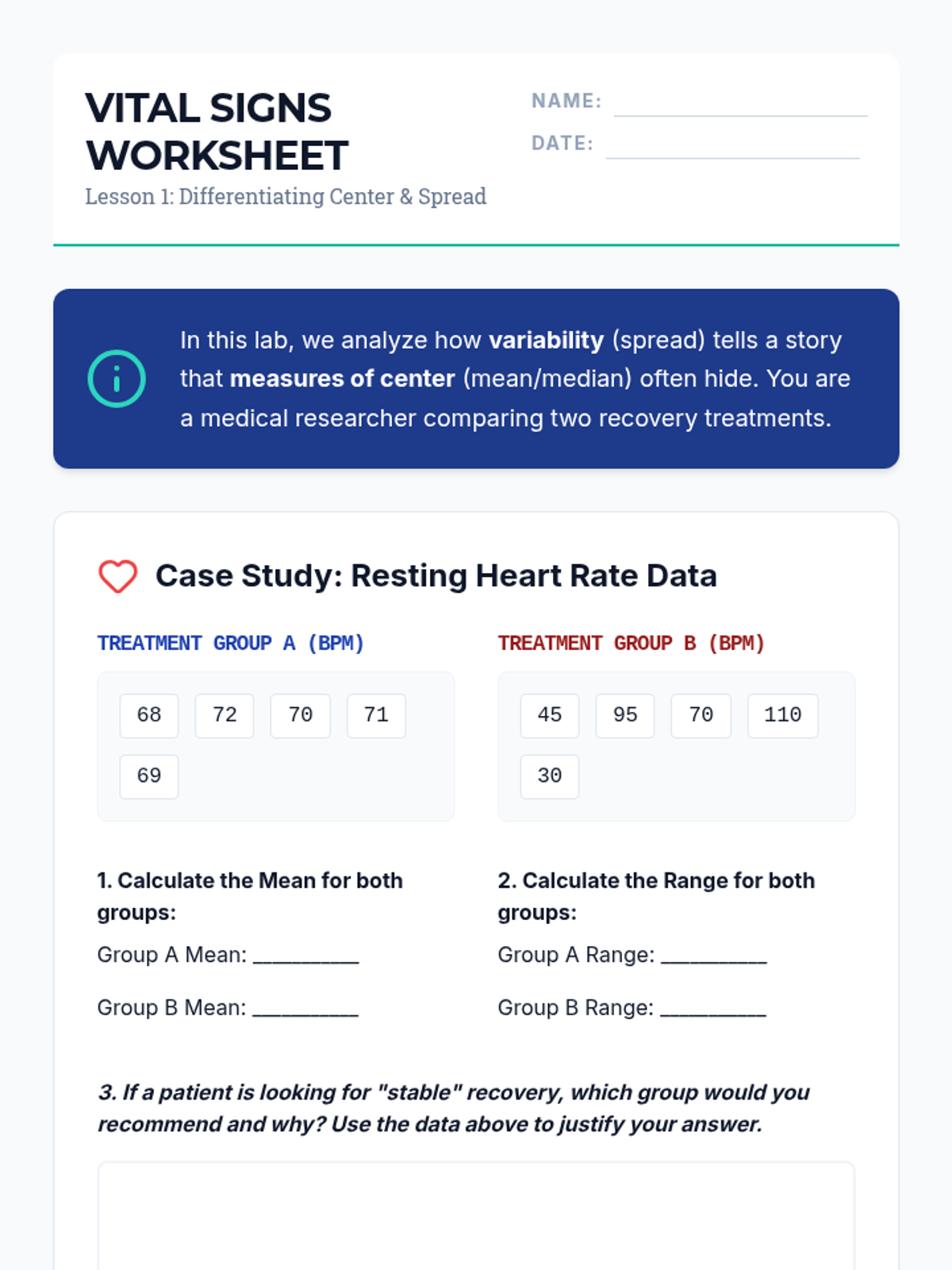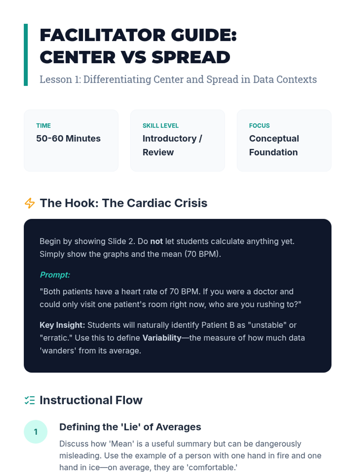 An inquiry-based exploration of statistical variability, focusing on how data spread reveals truths about inequality, climate instability, and diversity that averages often hide. Students transition from visual distribution analysis to quantifying disparity using IQR and MAD, culminating in an independent investigation.