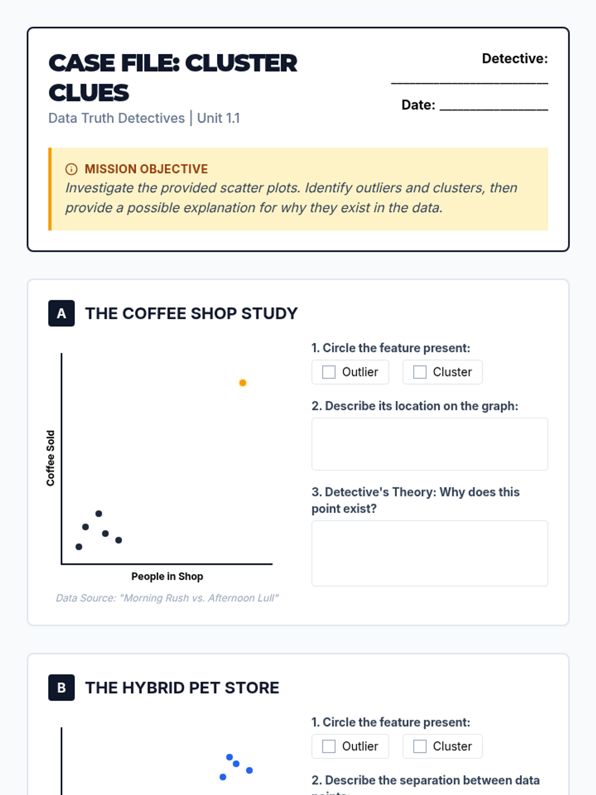A project-based unit where 7th-grade students act as data consultants to solve school-wide problems. They learn to identify bias, design sampling plans, collect data, and present data-backed recommendations to administration.