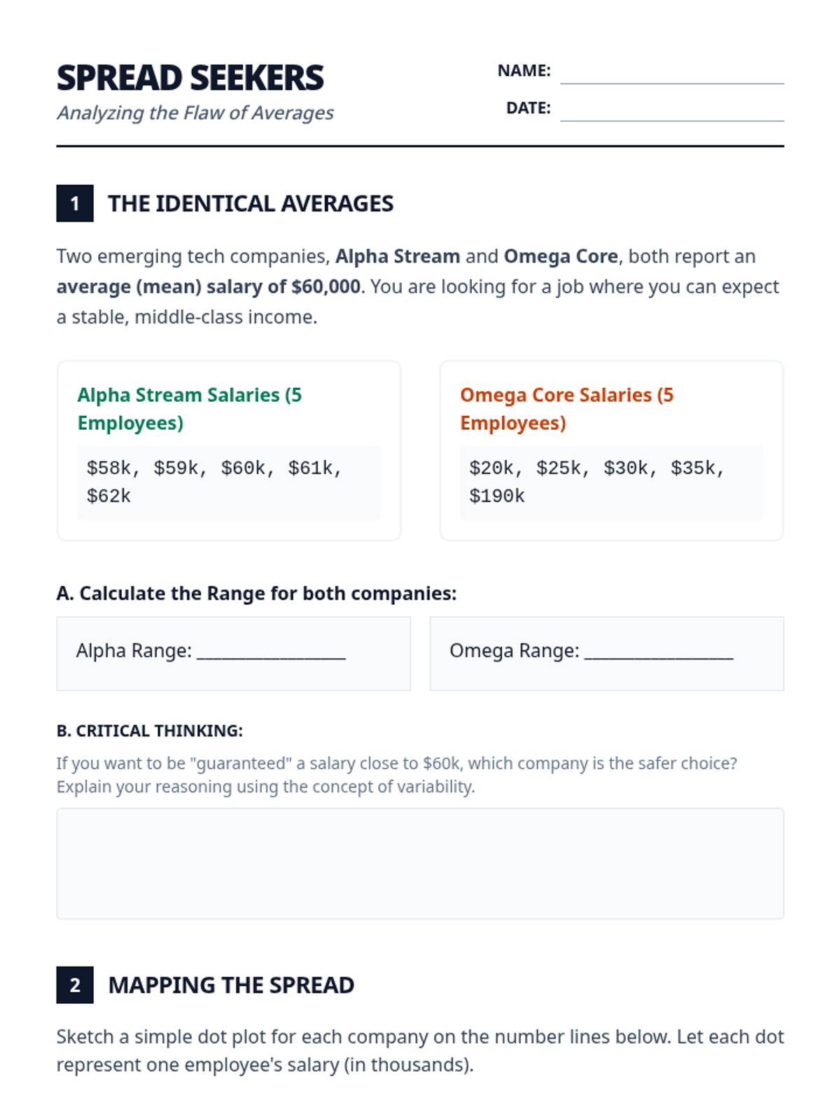 A high school statistics sequence investigating economic disparity through measures of spread (Range, IQR, MAD), emphasizing how variability reveals truths hidden by averages.