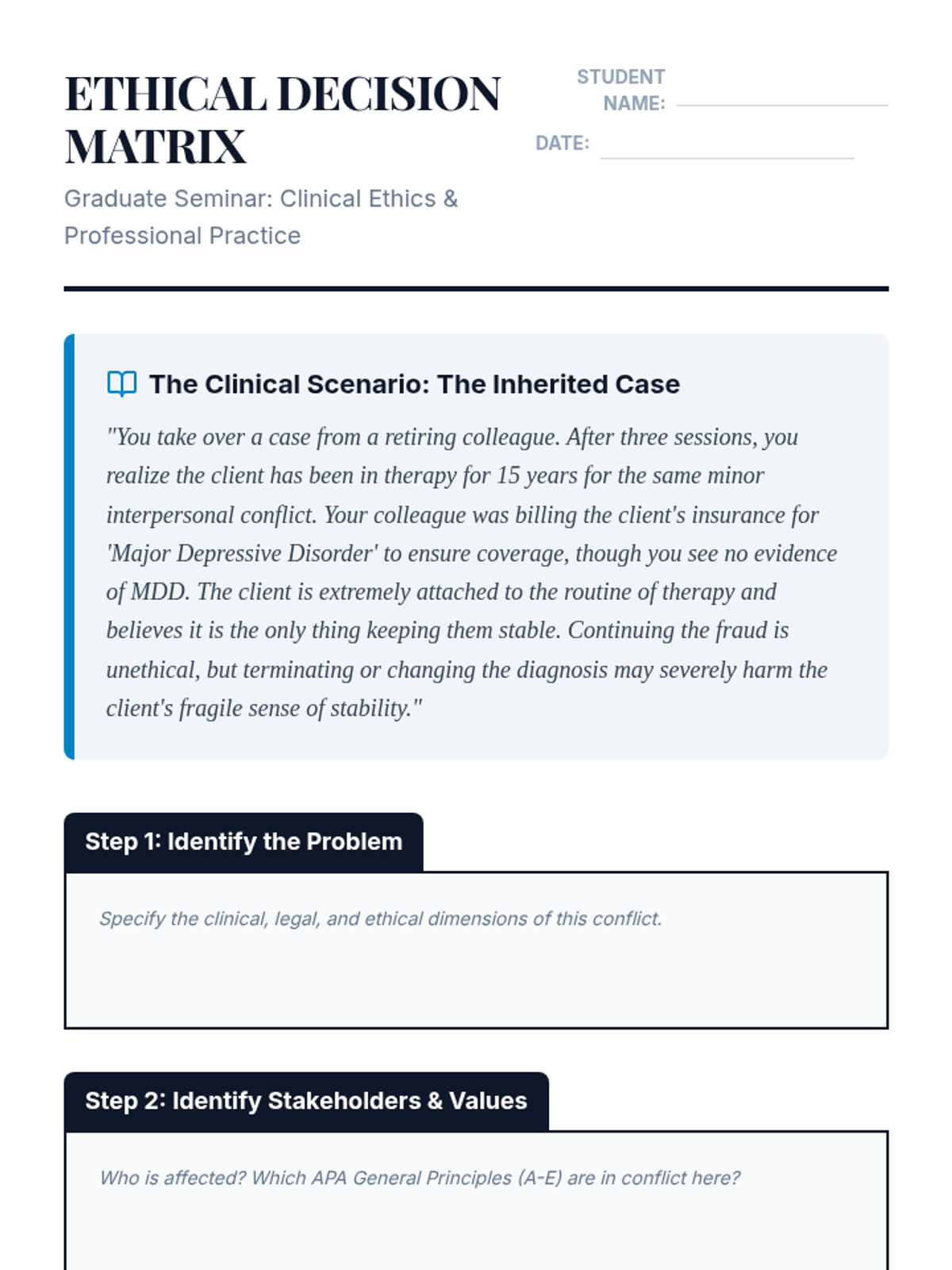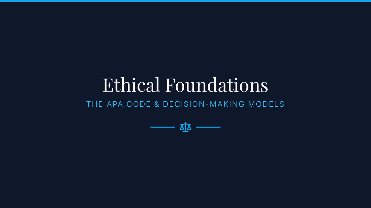 A comprehensive graduate-level course exploring the intersection of ethical codes, legal requirements, and cultural competence in clinical psychology, featuring case-based learning and critical decision-making models.