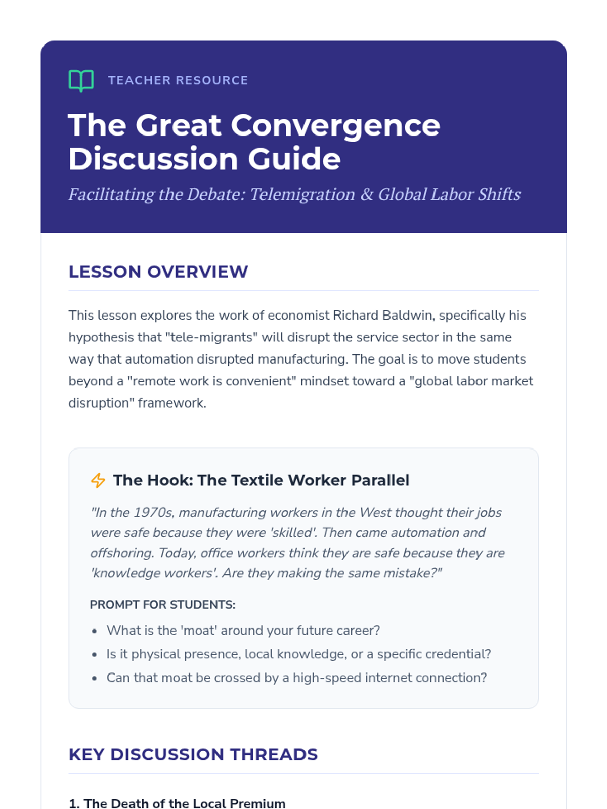 This graduate-level sequence explores the macroeconomic and organizational shifts caused by the decoupling of labor from location. It covers telemigration, asynchronous management, urban economic impacts, and cross-cultural digital leadership, culminating in a strategic workforce planning capstone.