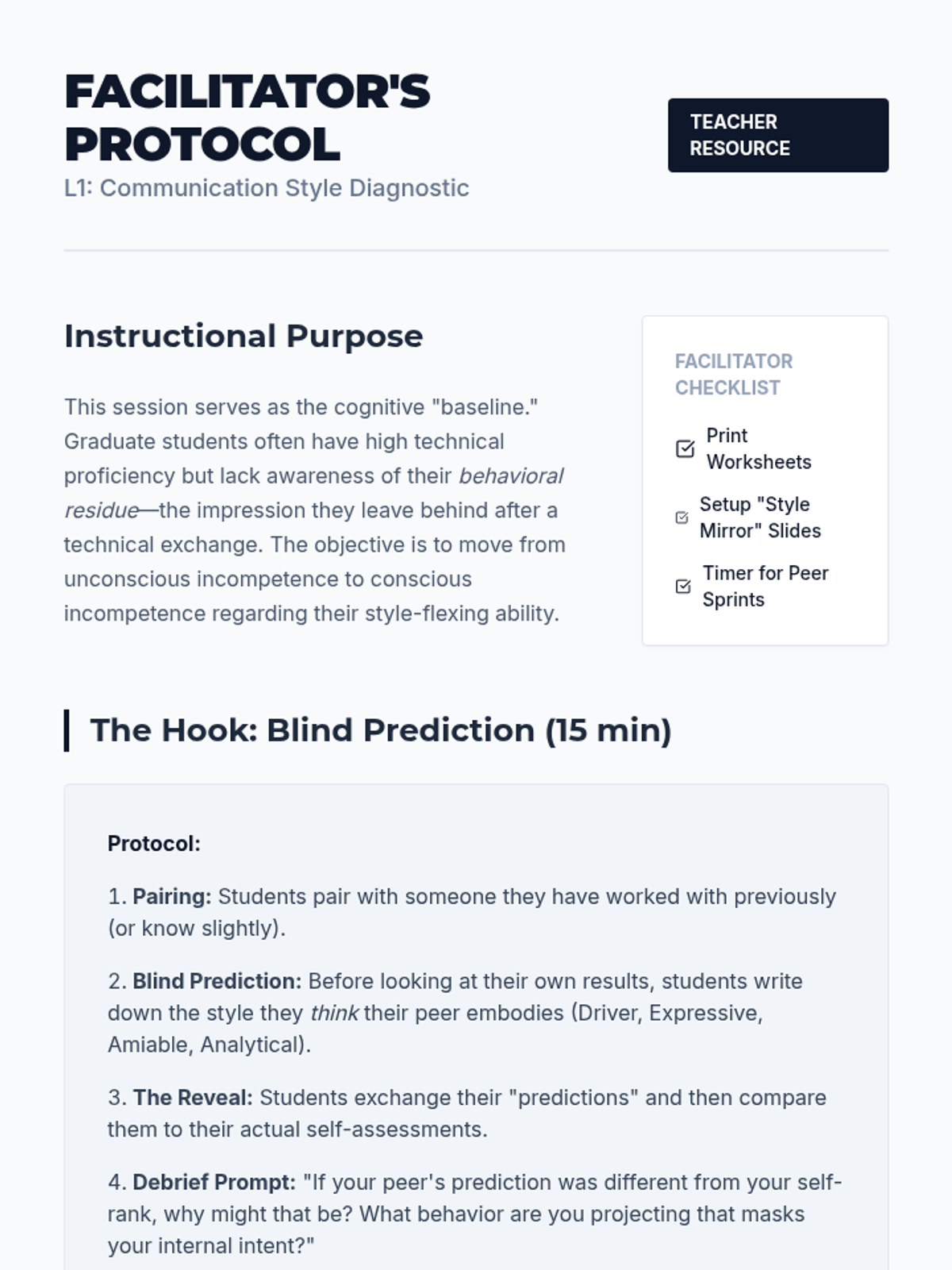 This workshop-style sequence for graduate students focuses on the interpersonal dimensions of adaptability, training them to diagnose and adjust communication styles for diverse professional audiences across cultural, disciplinary, and hierarchical boundaries.