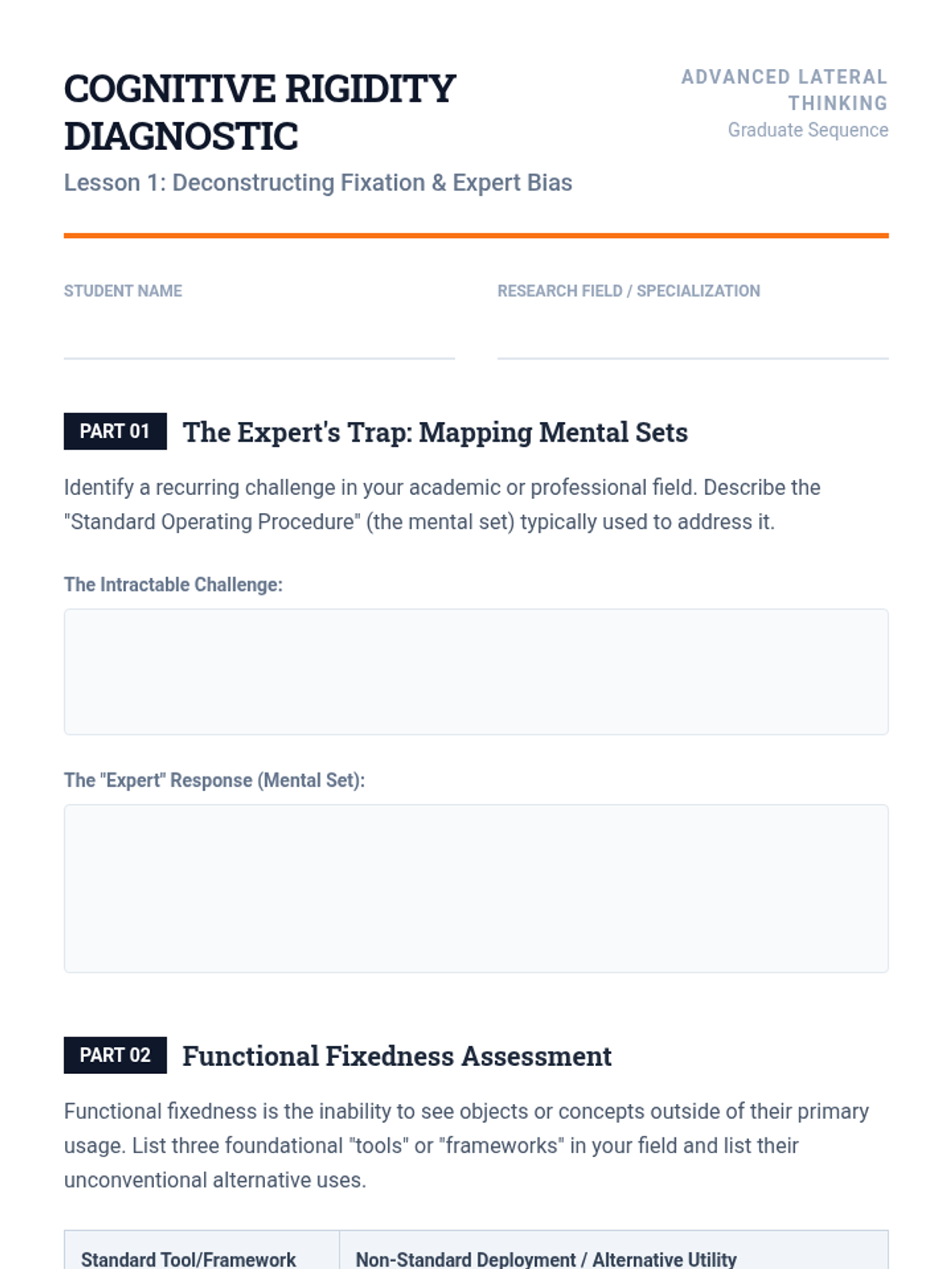 An advanced course for graduate students on deconstructing cognitive biases and applying systematic lateral thinking techniques to solve complex 'wicked' problems.