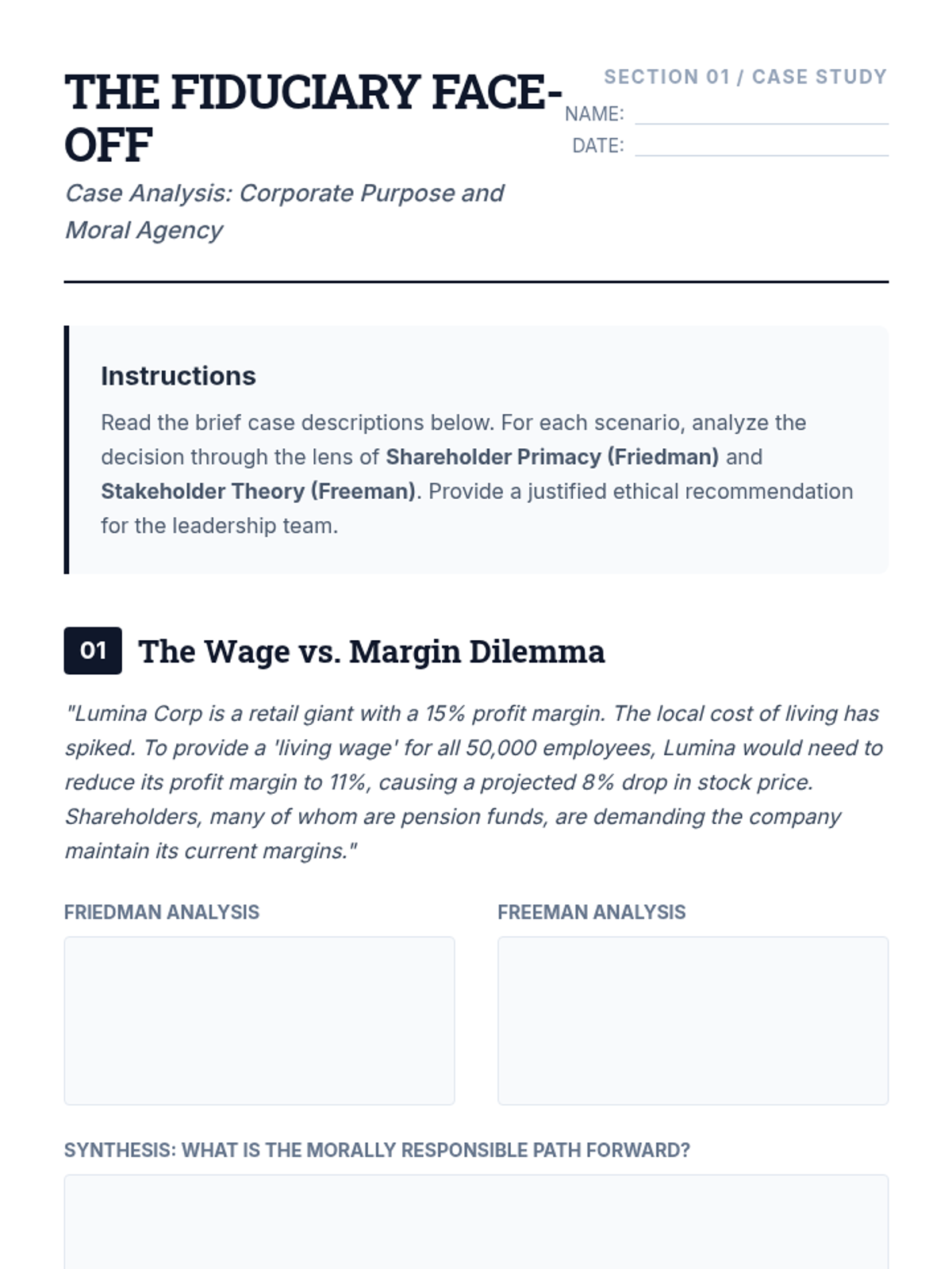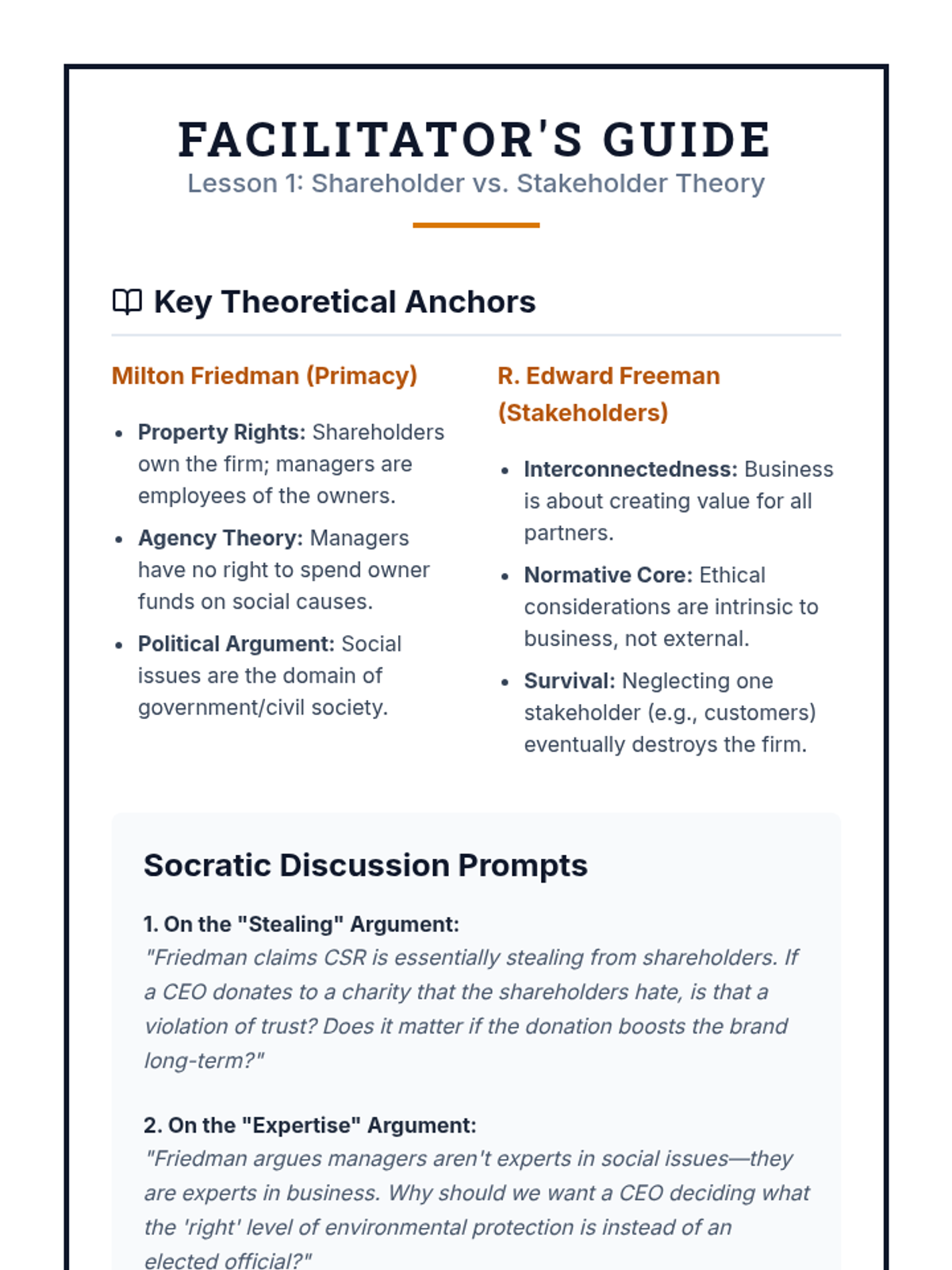 This sequence explores the intersection of ethical theory and organizational leadership for graduate-level students. It covers fundamental corporate theories, the moral complexities of whistleblowing, the realities of CSR, behavioral ethics in leadership, and ethical crisis management.