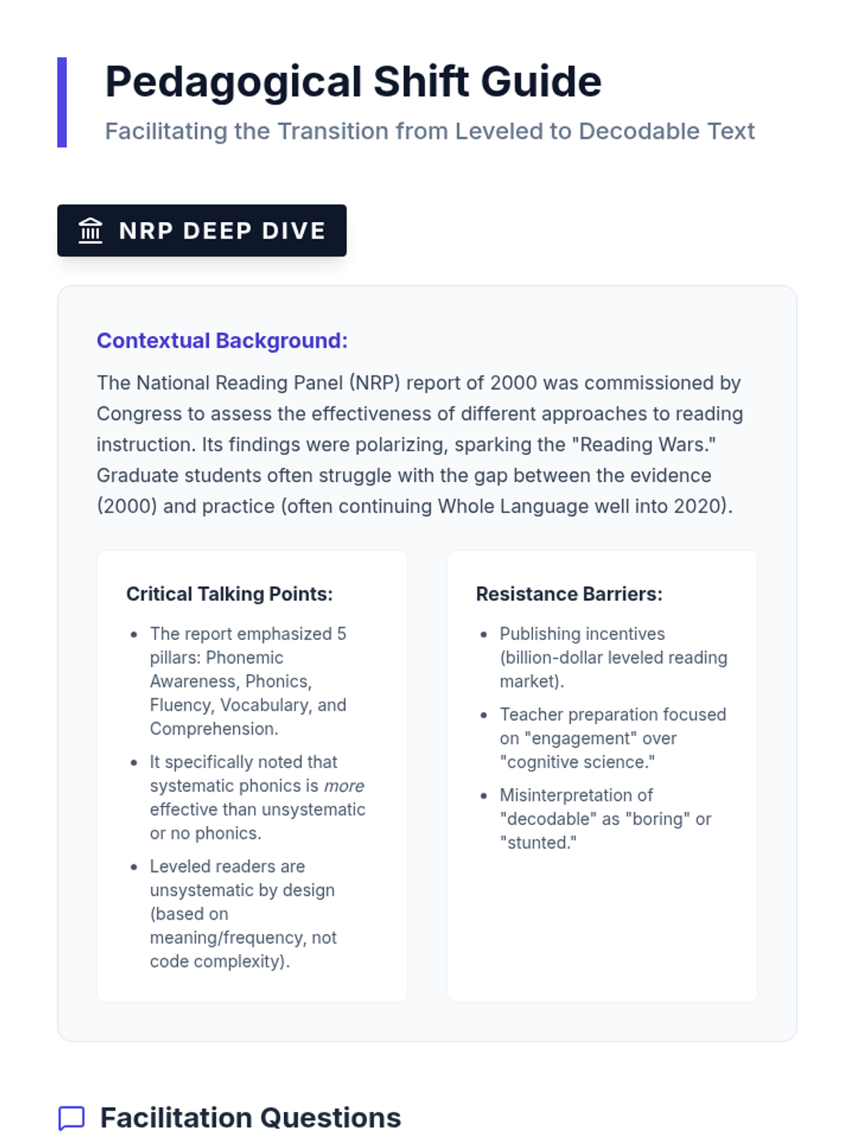 This sequence provides graduate students with a deep dive into the theoretical and cognitive foundations of decodable texts. It explores the transition from whole-language leveled readers to phonics-aligned materials through the lens of the Science of Reading, orthographic mapping, and research synthesis.