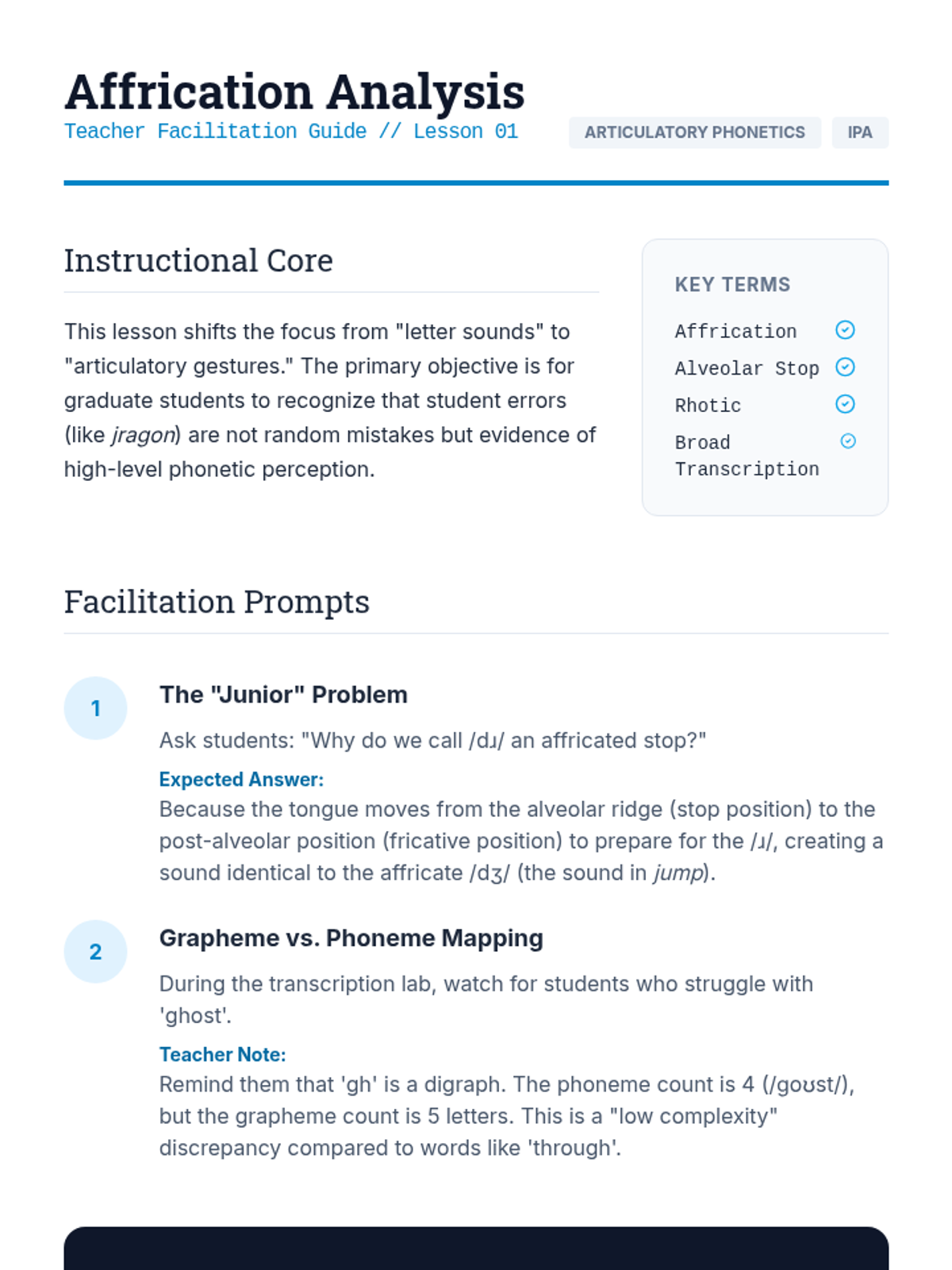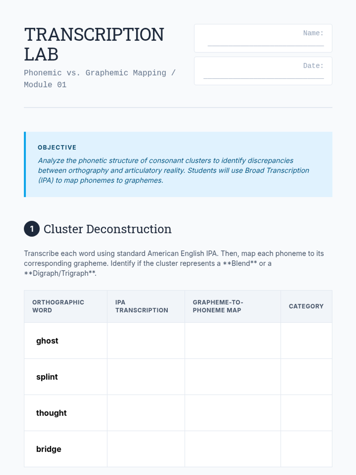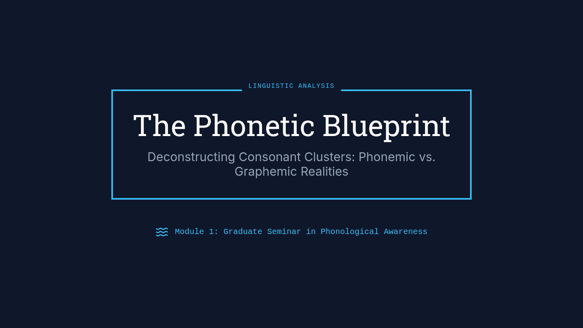 An advanced graduate-level exploration of consonant clusters, bridging linguistic theory (articulatory phonetics, sonority sequencing, etymology) with practical reading instruction and curriculum critique. Students will analyze the phonetic and acoustic properties of blends, digraphs, and trigraphs to understand acquisition hierarchies and student error patterns.