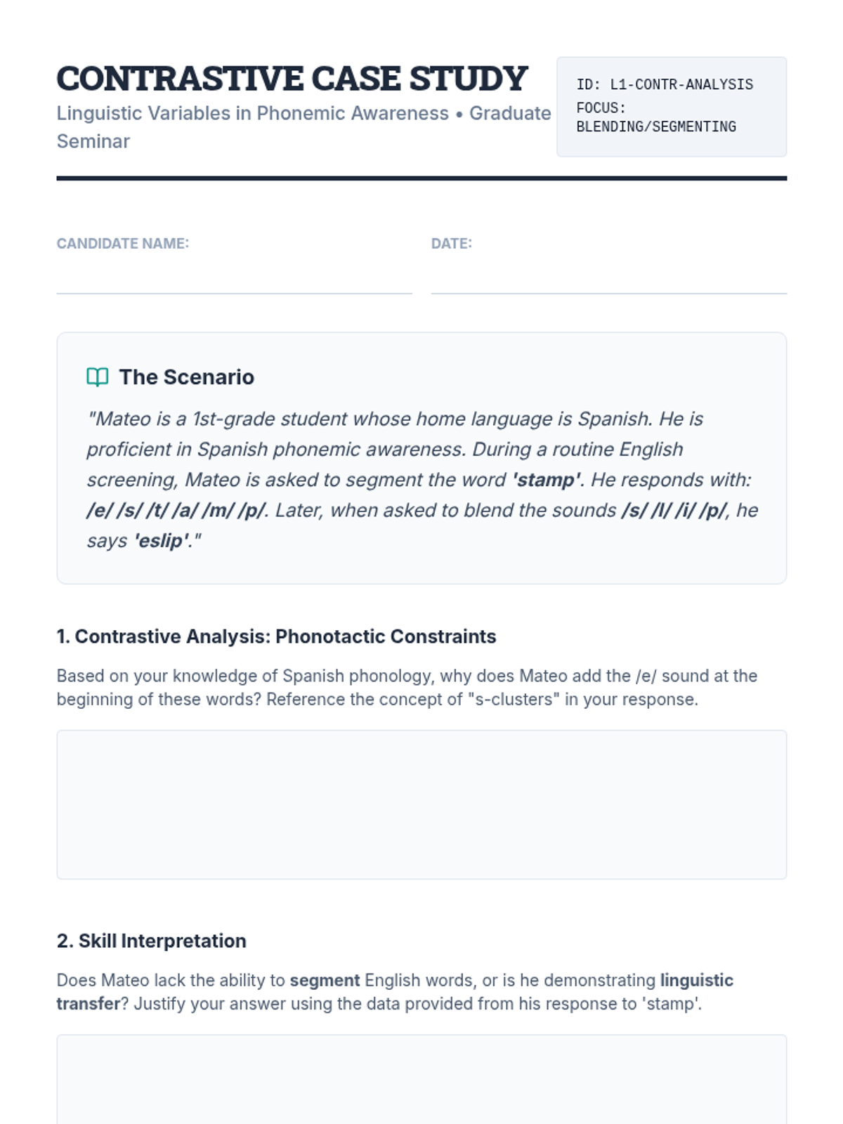 This graduate-level sequence examines the impact of linguistic diversity, dialect variation, and second language acquisition on phonemic awareness instruction, specifically blending and segmenting. Educators will learn to distinguish between language differences and learning disabilities while developing culturally responsive literacy practices.
