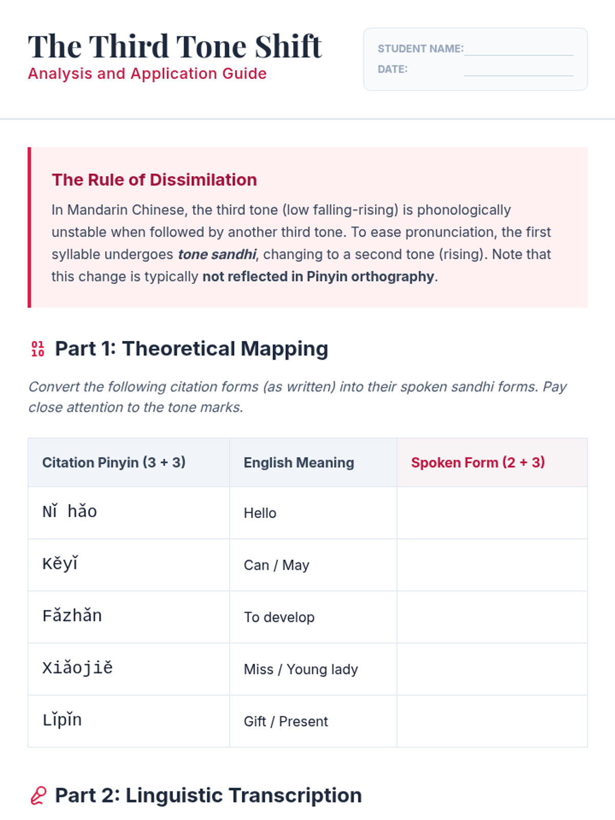 A comprehensive exploration of Mandarin Chinese tone sandhi and sentence prosody for graduate students, focusing on the linguistic rules and practical application of connected speech patterns.