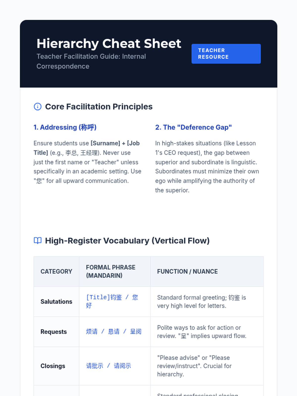 A high-level sequence for graduate students to master the complexities of formal Chinese business writing, focusing on hierarchy, etiquette, and the preservation of 'face'.