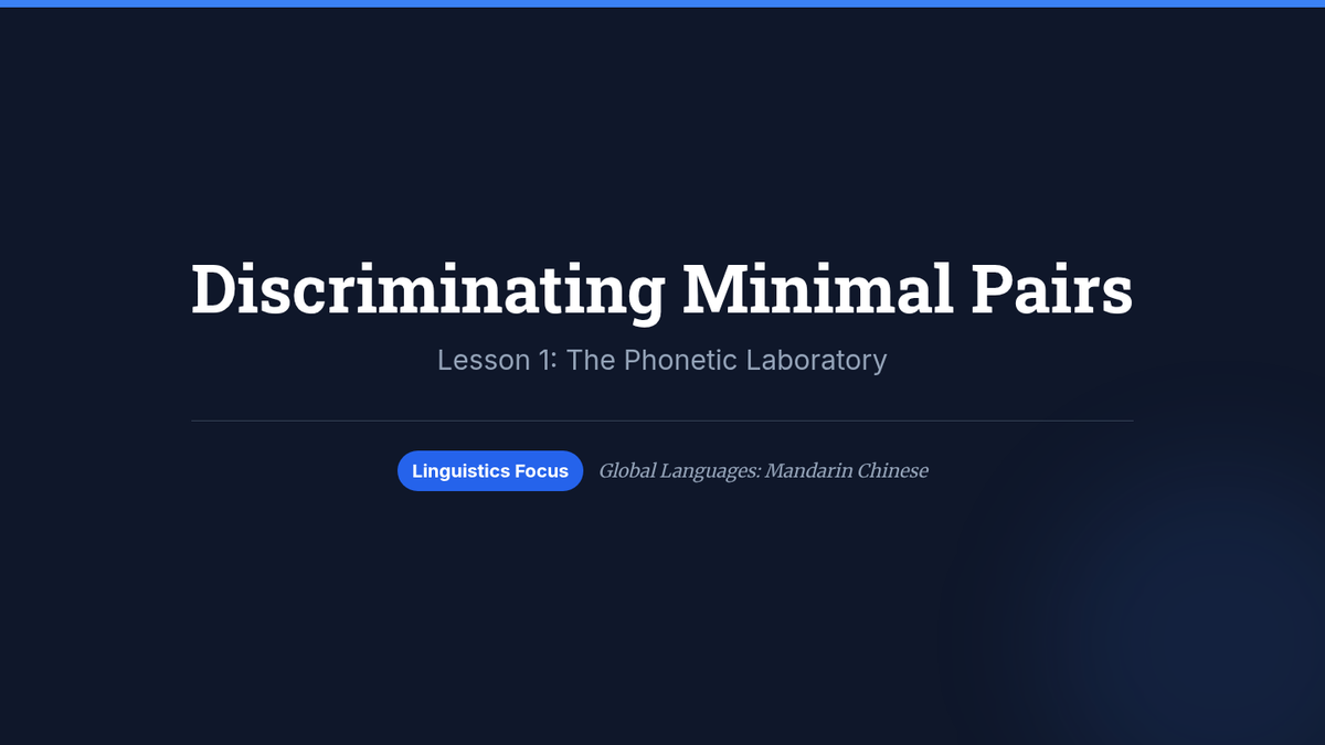 A comprehensive introduction to Mandarin Chinese phonetics for undergraduate students, focusing on the Pinyin system and tonal accuracy. The sequence covers initials, finals, the four tones, sandhi rules, and transcription skills through a technical 'Linguistic Blueprint' lens.