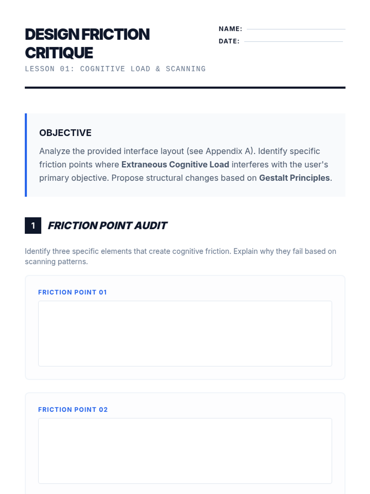 A graduate-level sequence exploring visual hierarchy, information design, and cognitive psychology. Students learn to reduce cognitive load through data visualization, accessibility standards, and wayfinding systems.
