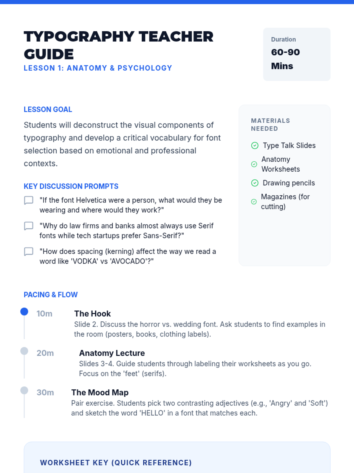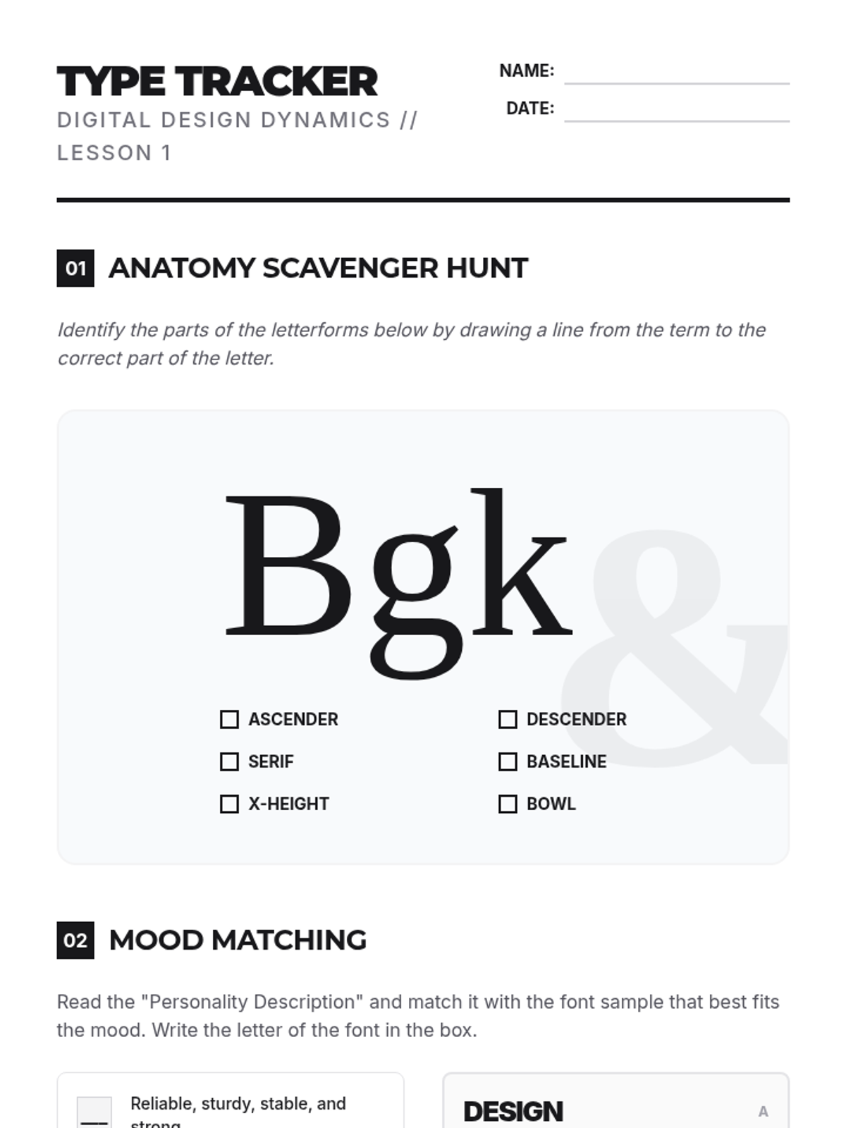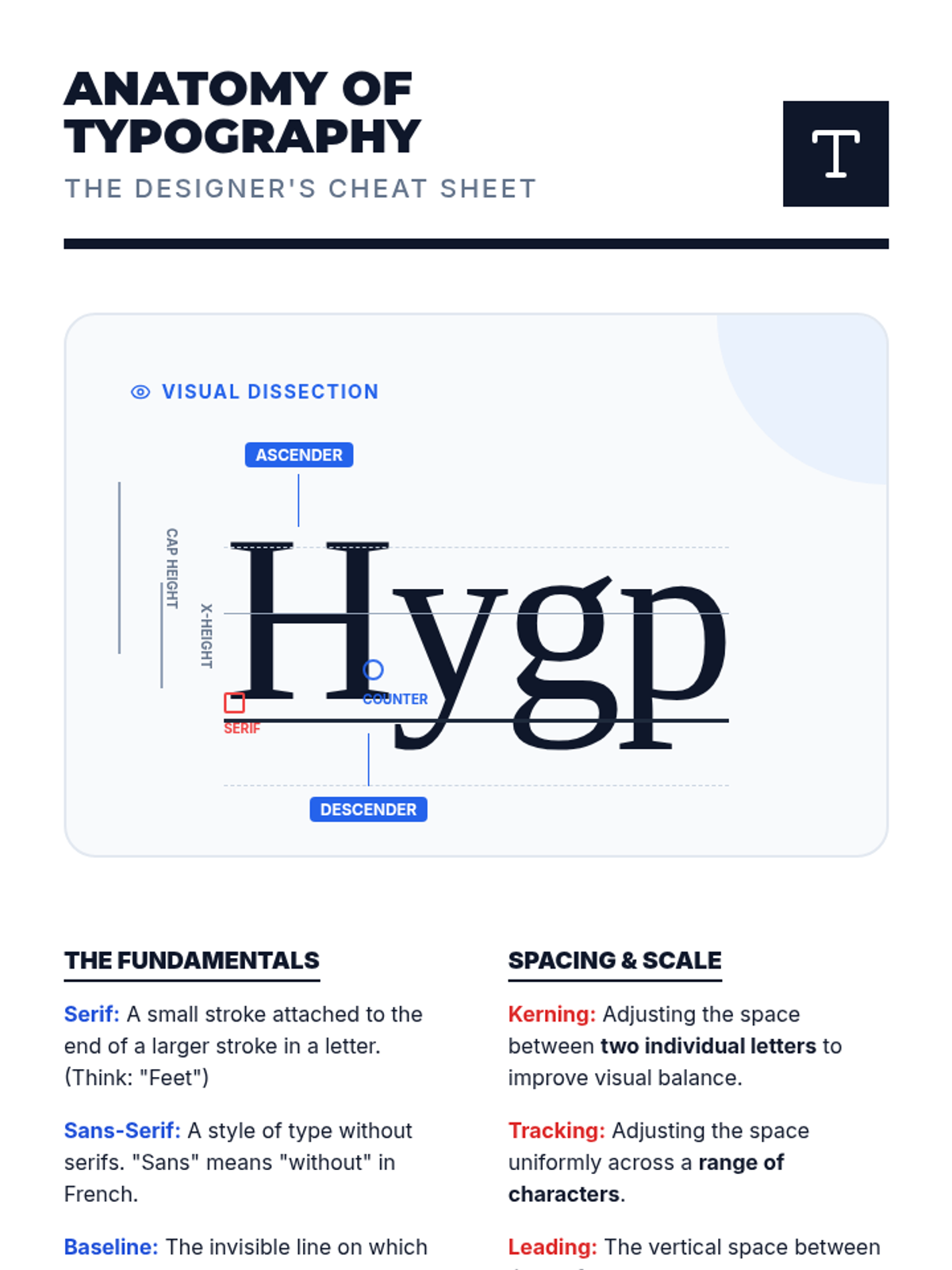 A comprehensive introduction to digital graphic design and typography for 10th-grade students. This sequence bridges the gap between traditional art and modern vector-based technology, focusing on anatomy, hierarchy, logo design, and print preparation.
