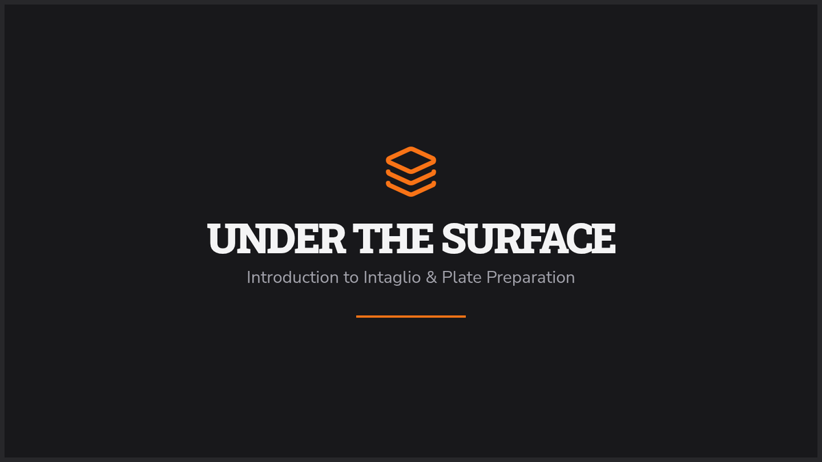Students transition from relief printing to intaglio, mastering drypoint etching on plexiglass. The sequence covers plate preparation, scribing for texture and value, inking/wiping techniques, press operation, and advanced chine-collé methods.