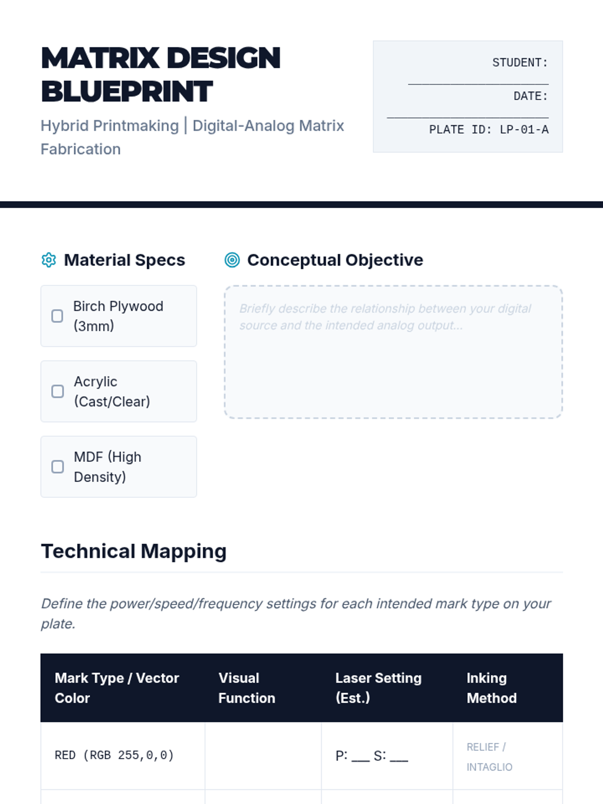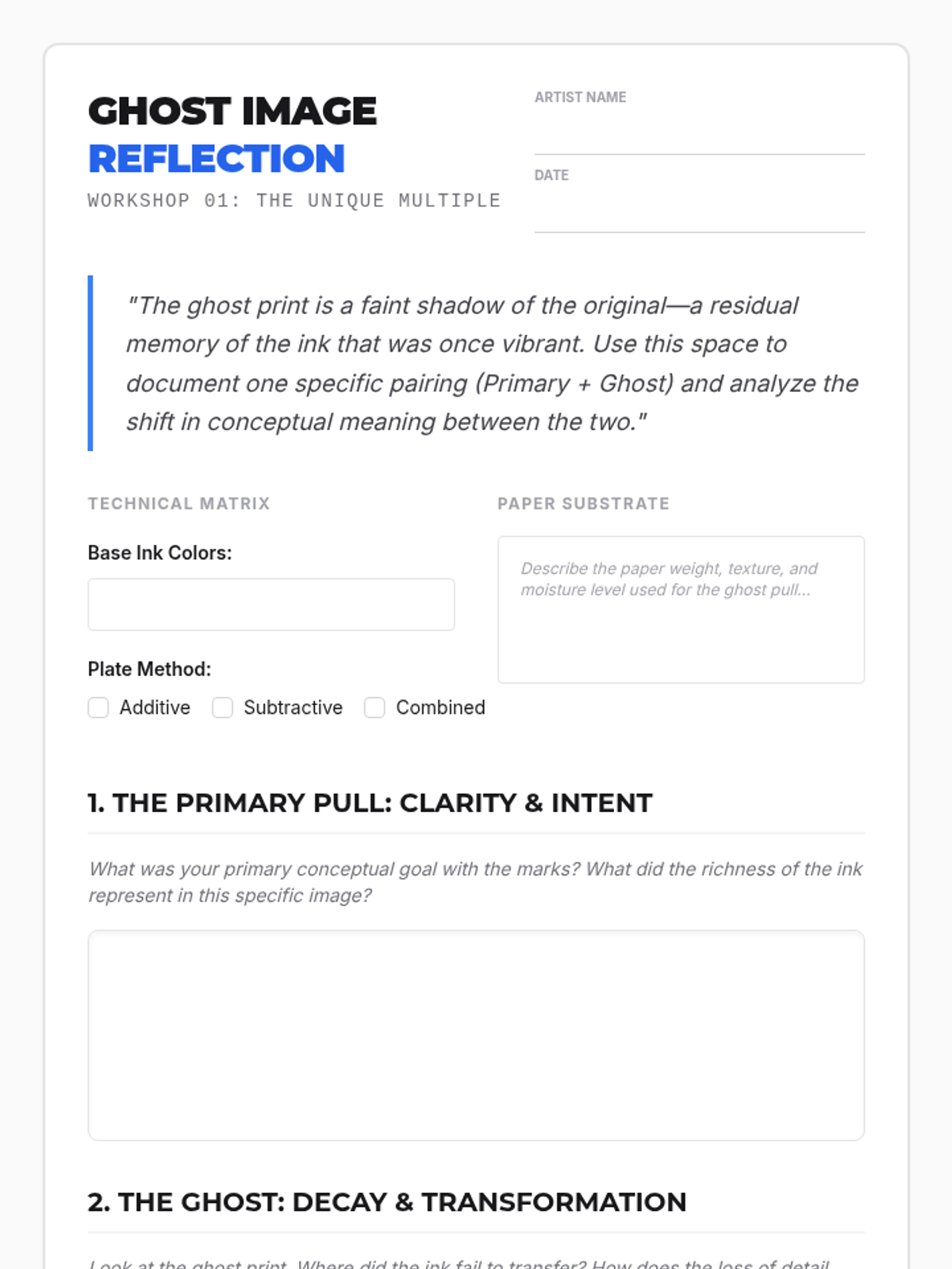An advanced undergraduate printmaking sequence that challenges traditional boundaries by combining experimental monotype, collagraphy, and digital-analog hybrid workflows. Students explore the concept of the 'unique multiple' and develop a professional portfolio focused on the intersection of physical ink and digital media.