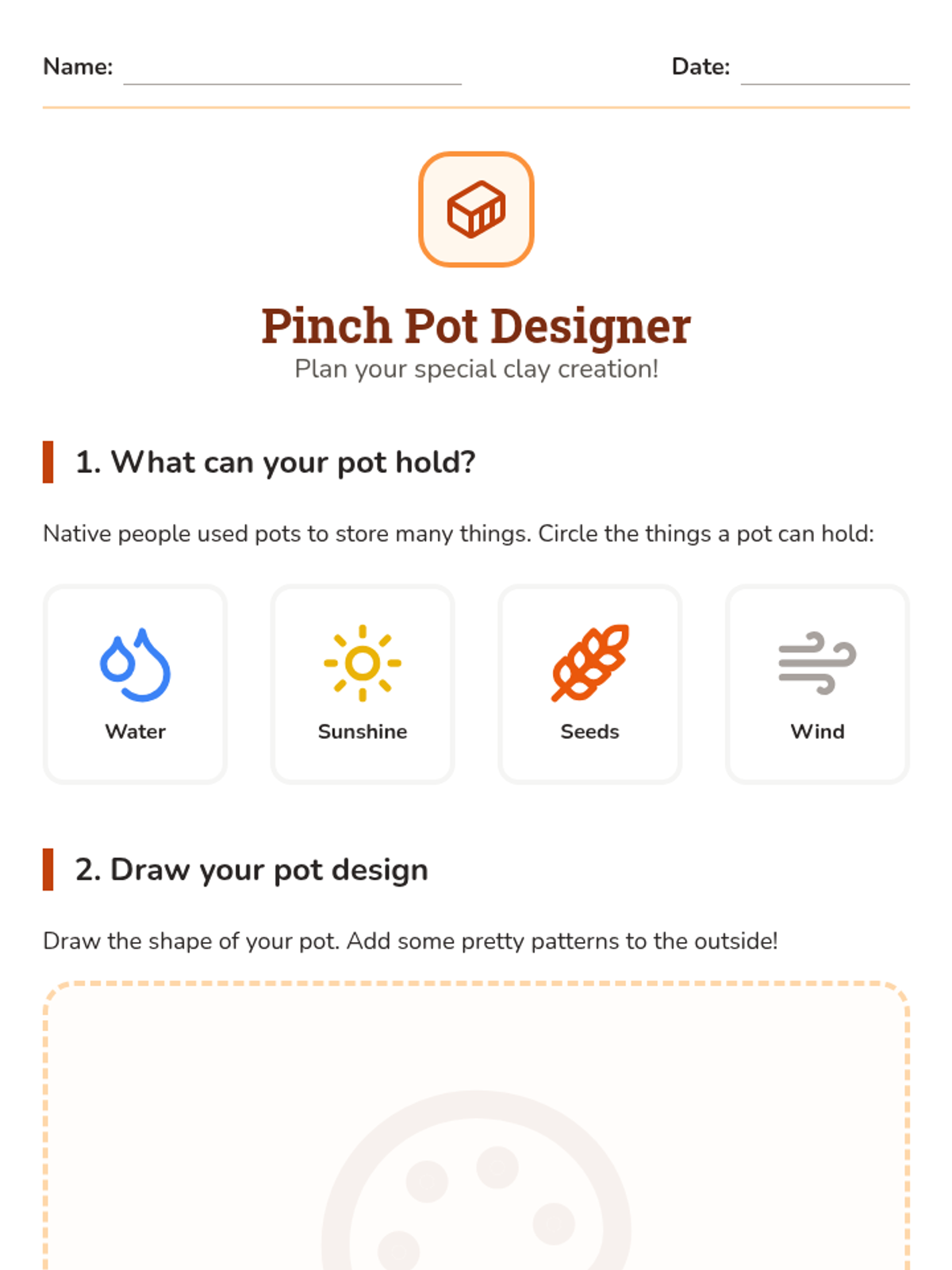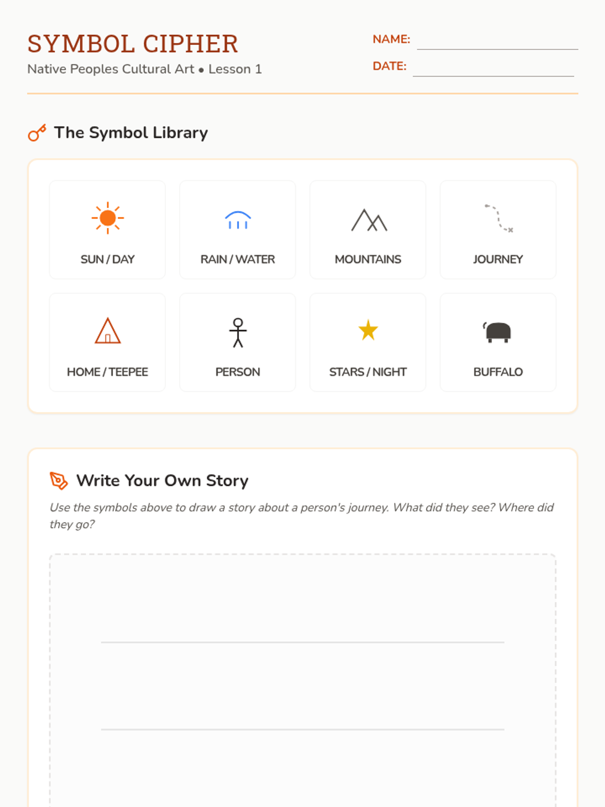 This workshop-style sequence immerses 1st-grade students in the artistic traditions of various Native American nations, focusing on patterns, symbols, and craftsmanship. Students explore pottery, weaving, and carving to understand how art reflects community history and personal identity.