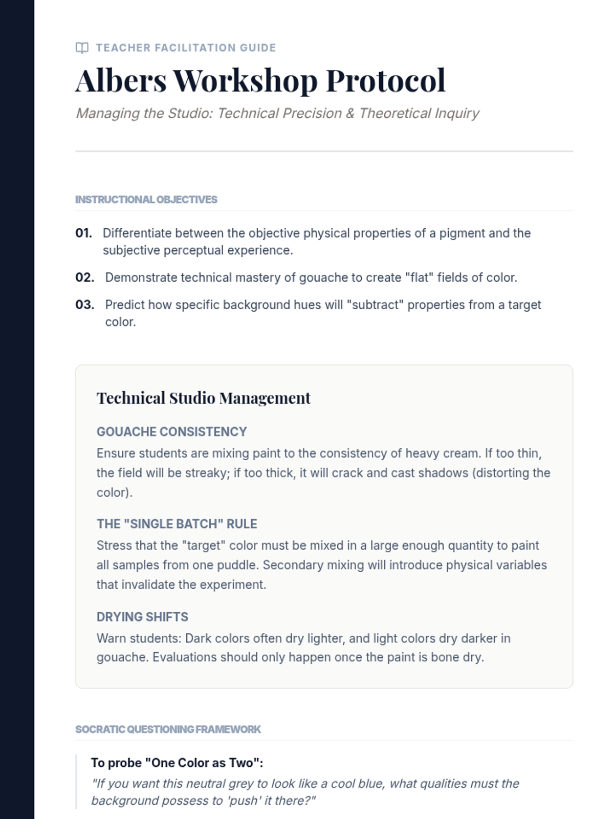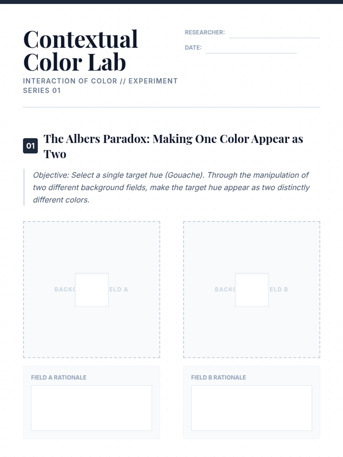 An intensive graduate-level investigation into the physics, psychology, and application of color in fine art, focusing on relativity, semiotics, and narrative.