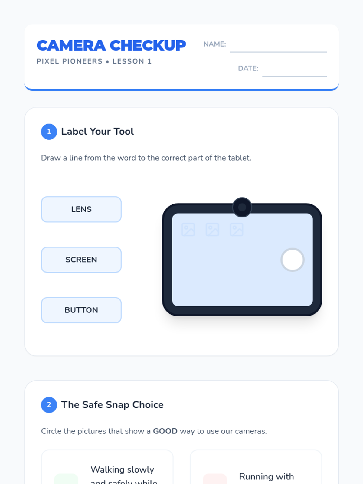 This 2nd-grade sequence introduces students to the fundamentals of digital photography and user interface design. Students progress from capturing and editing clear images to understanding and designing the icons and layouts that make digital apps functional and visually appealing.