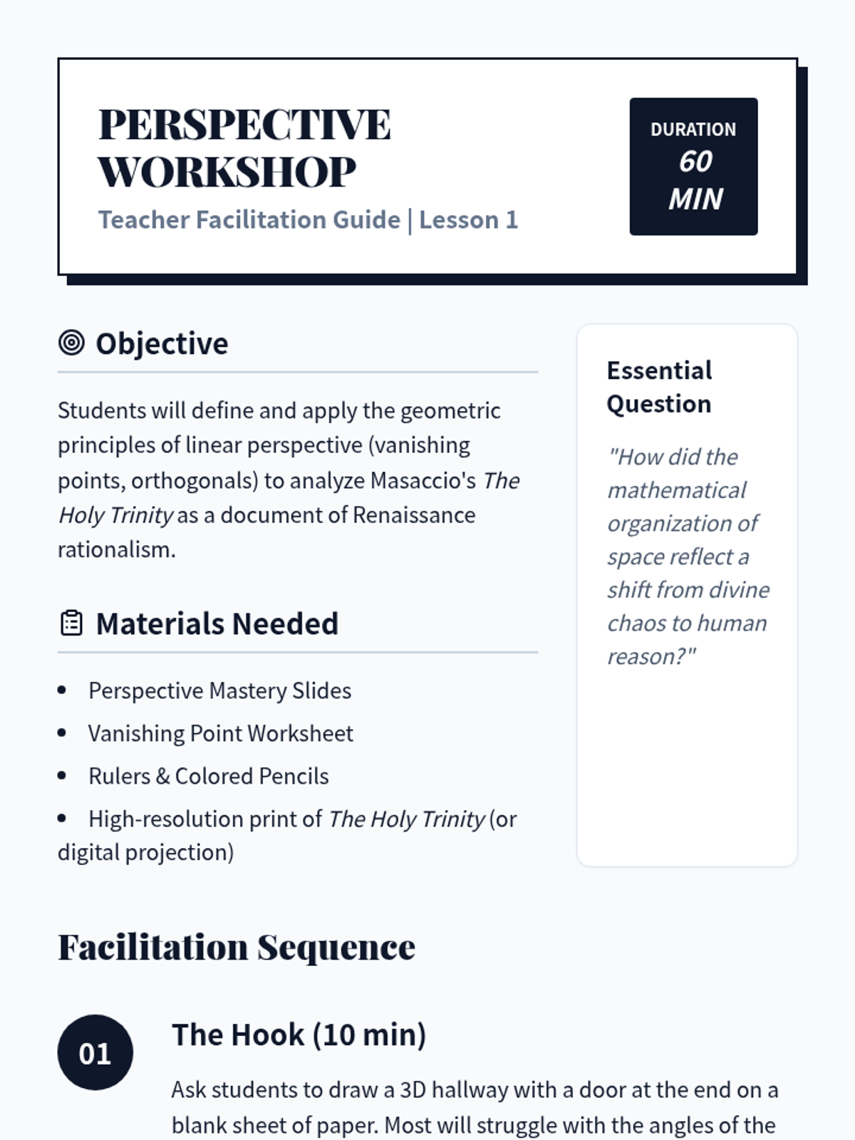 Students investigate how visual arts served as a vehicle for political power, religious messaging, and scientific observation during the Renaissance. This sequence moves beyond simple art appreciation to the analysis of 'visual rhetoric'—how perspective, anatomical realism, and classical allusions were used to convey meaning.