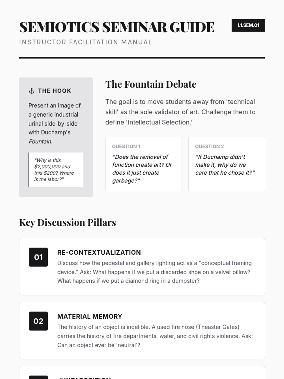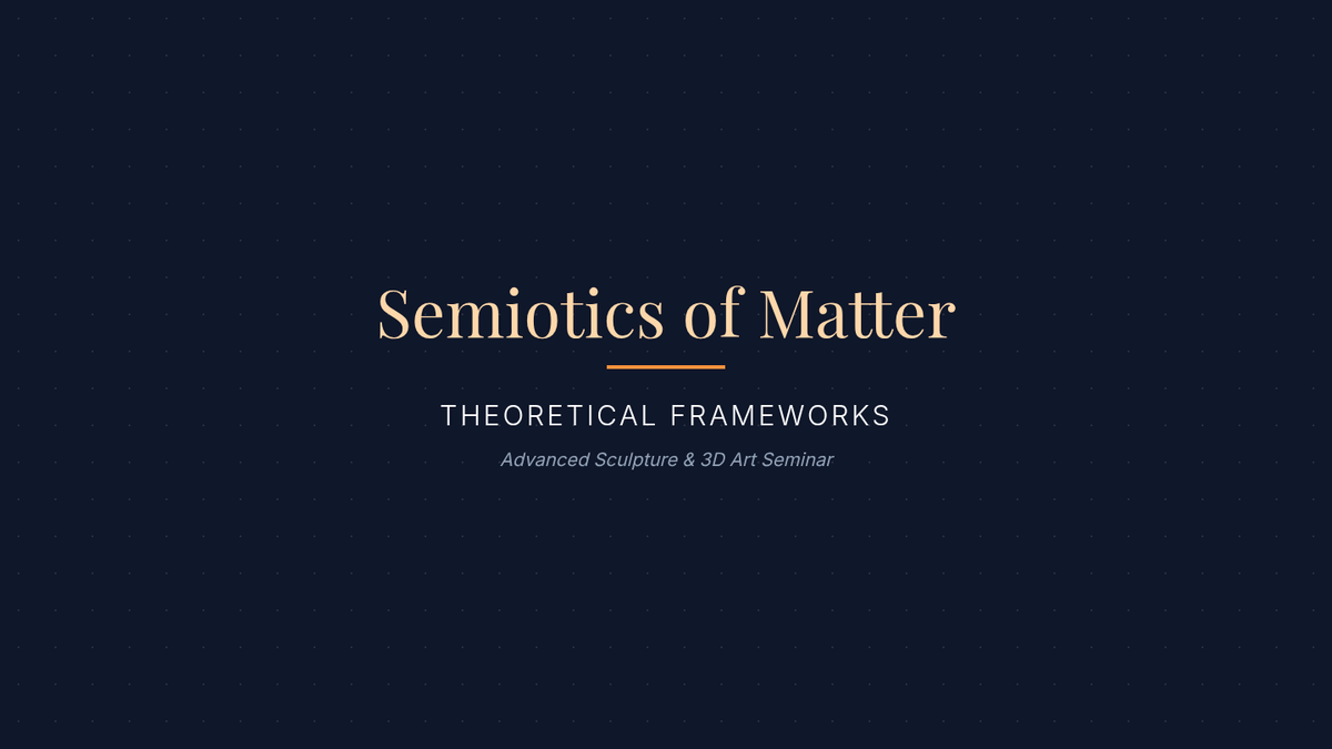 An advanced graduate-level exploration of material agency, semiotics, and sculptural practice, bridging critical theory with rigorous studio fabrication.