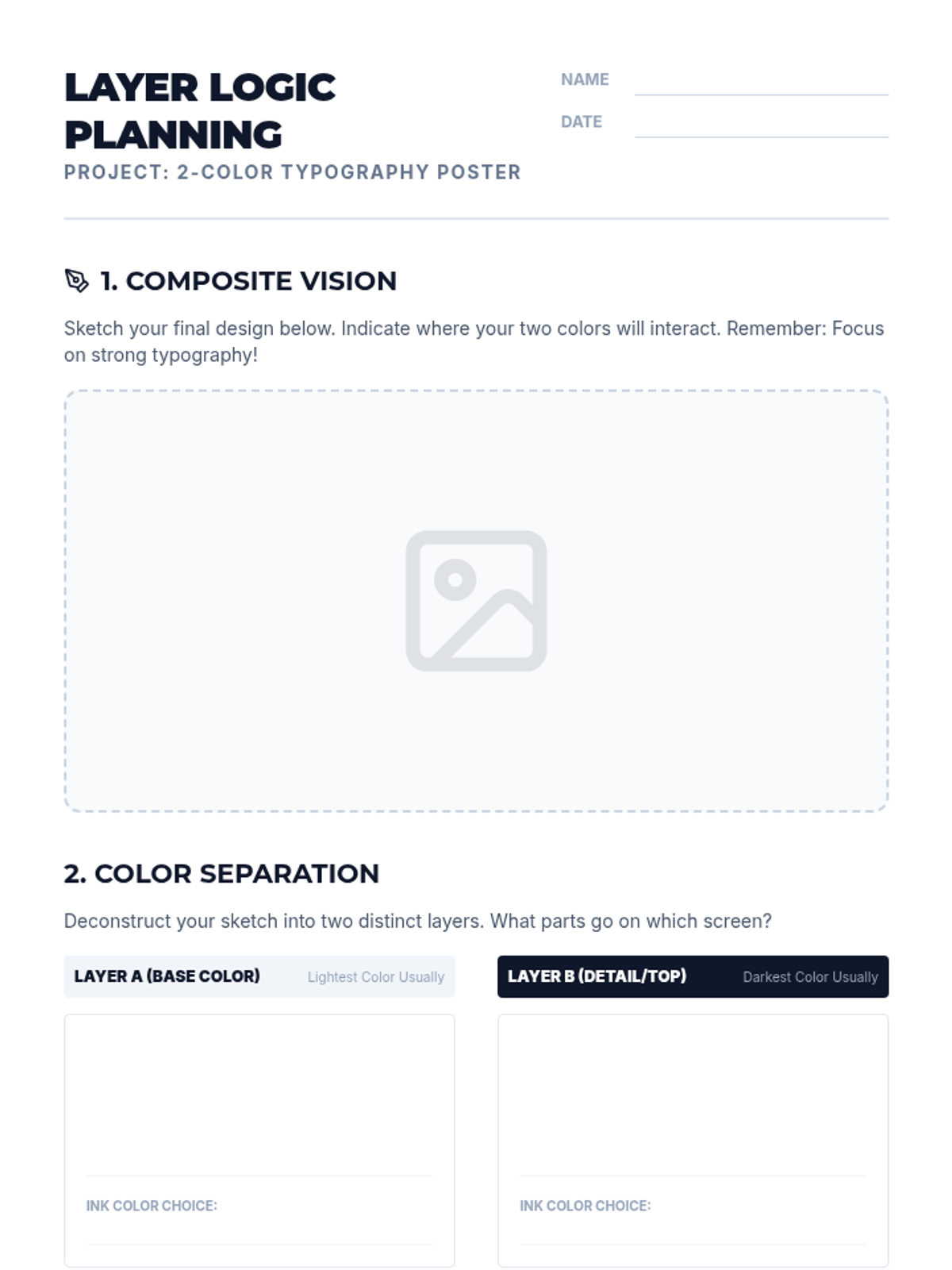 A comprehensive high school sequence exploring the technical and artistic intersection of screen printing and typographic design, from emulsion chemistry to final editioning.