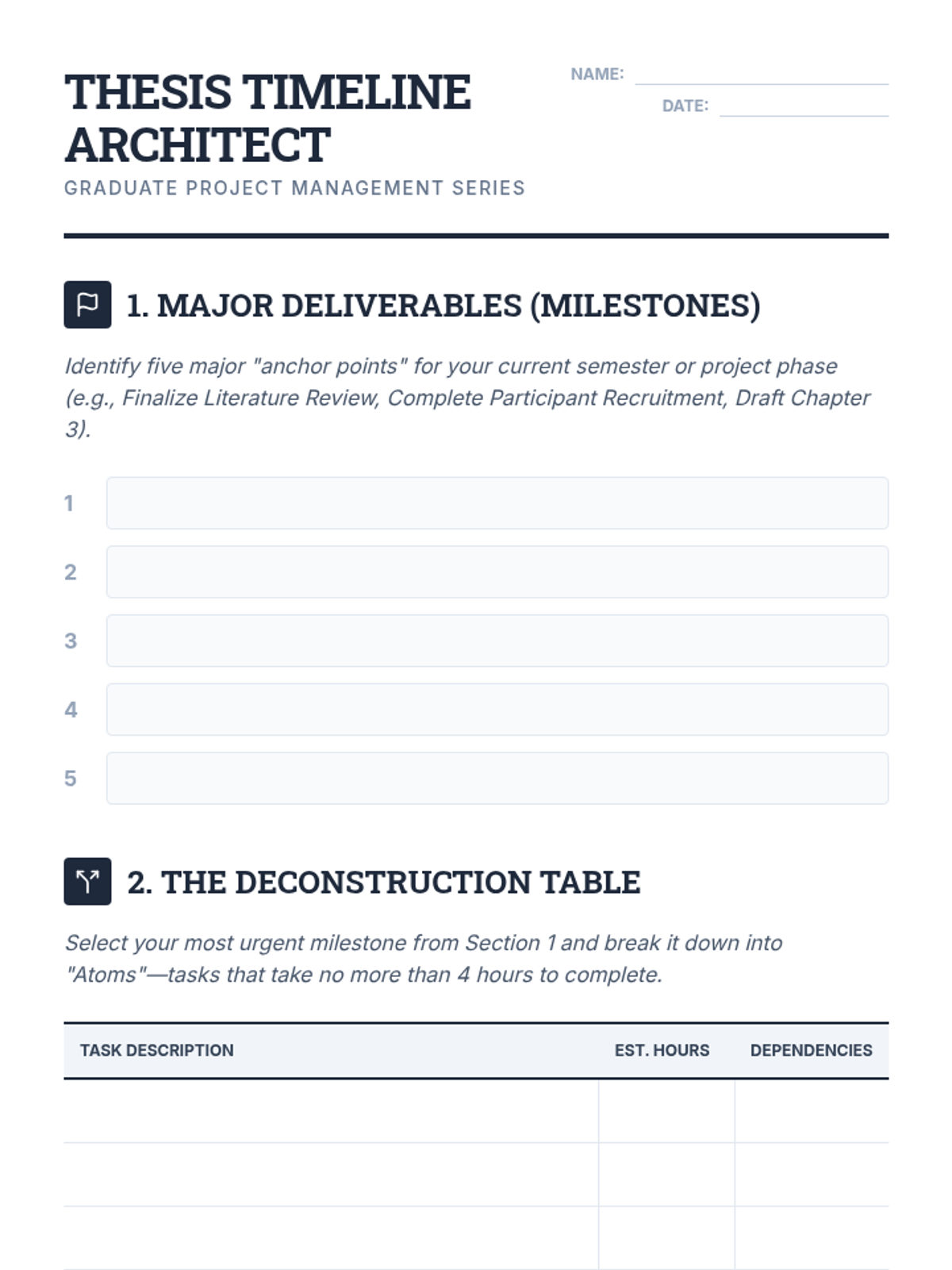 A comprehensive sequence for graduate students to master executive functioning, long-term project management, and high-stakes assessment preparation, treating their degree as a professional project.