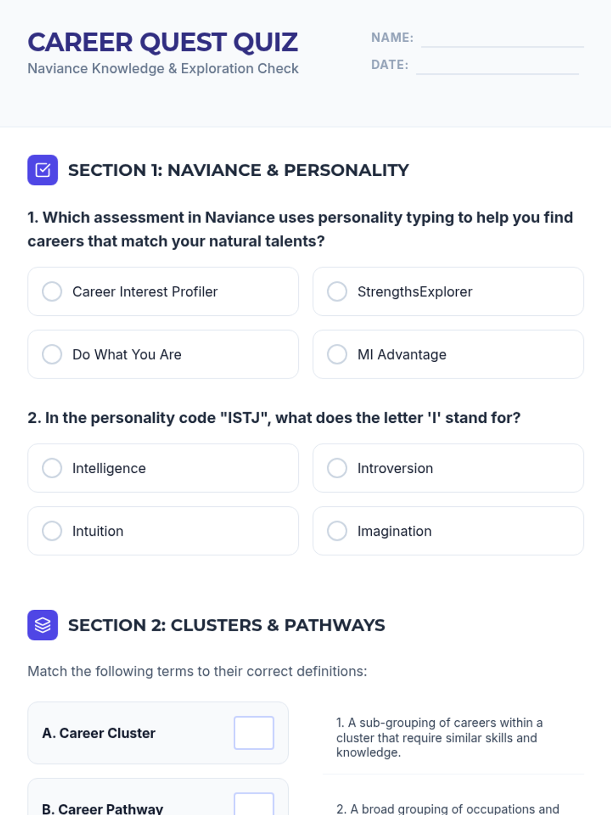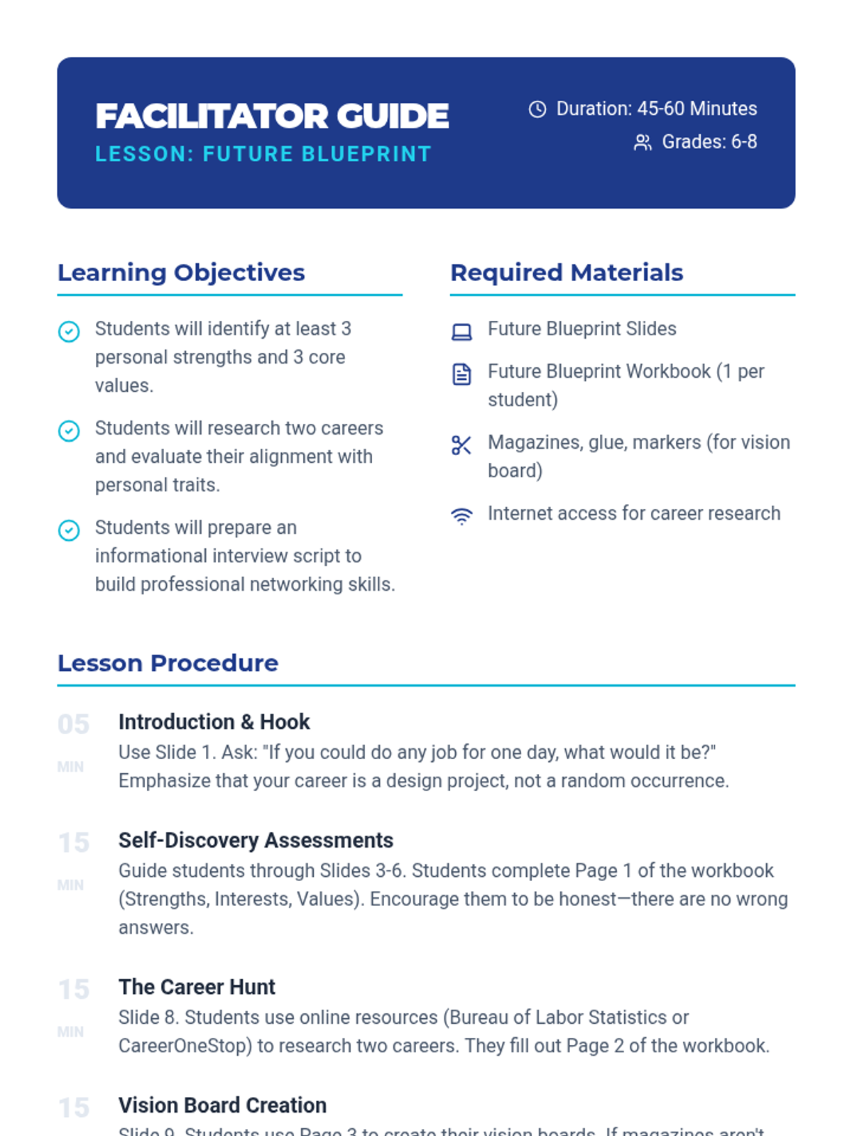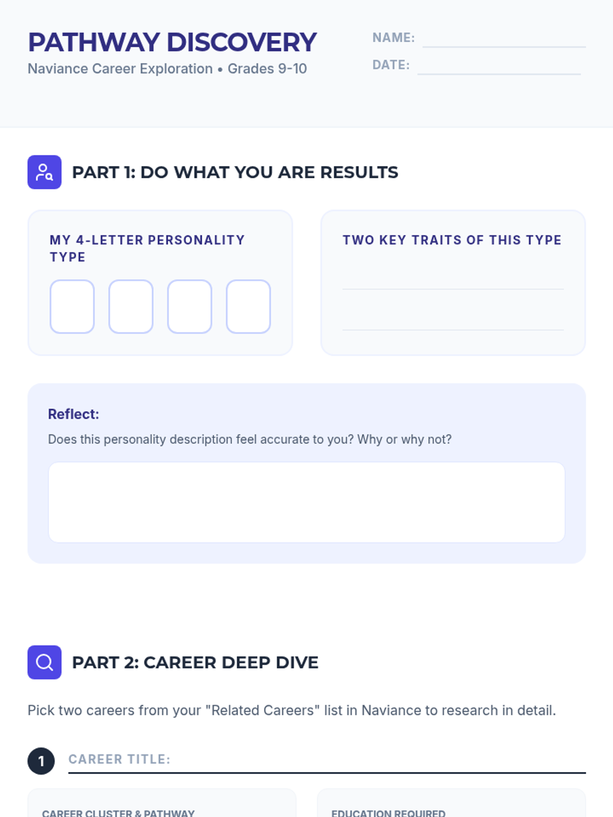 College selection, application workflows, and financial aid navigation including FAFSA and scholarship acquisition. Builds skills in personal statement writing and career exploration to align post-secondary choices with long-term professional goals.