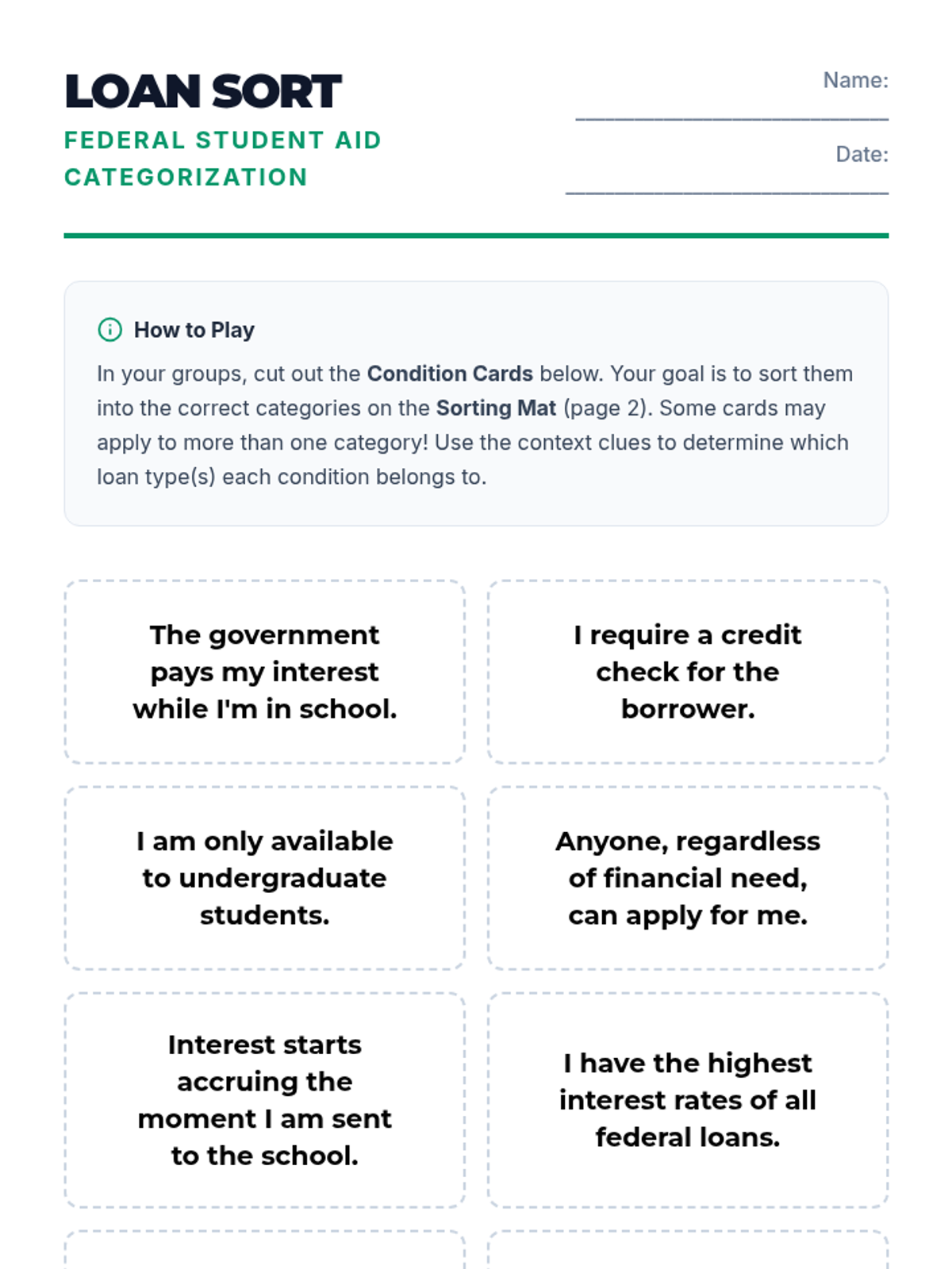 A comprehensive unit for 9th-grade students exploring the differences between federal and private student loans. Students learn to navigate financial aid terminology, calculate interest accrual, and evaluate the long-term impact of borrowing decisions.