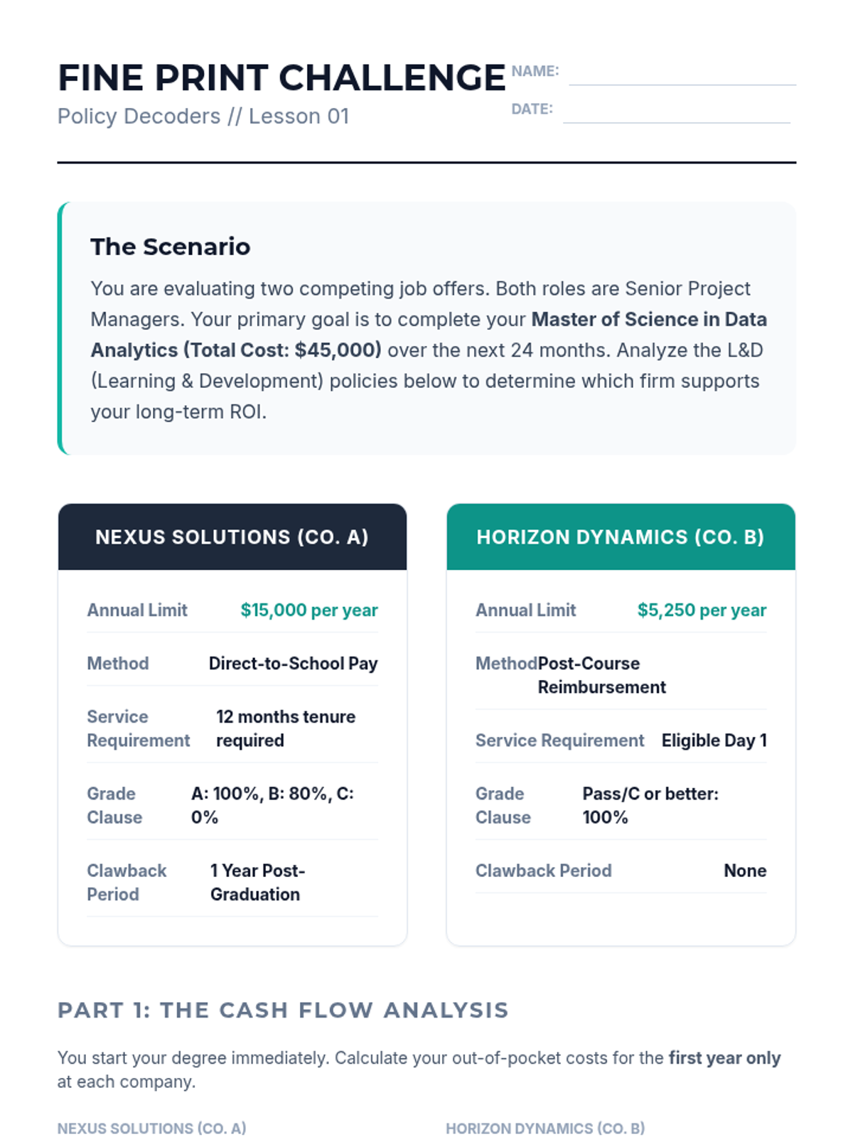 A professional development sequence for graduate students focused on navigating and negotiating employer-sponsored continuing education. Students learn to analyze corporate policies, build strategic business cases, and negotiate for flexibility to support their educational goals.