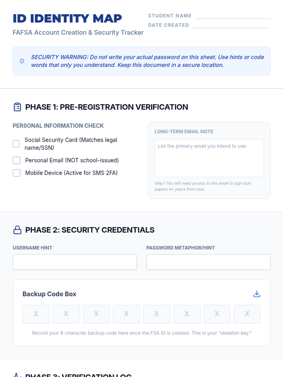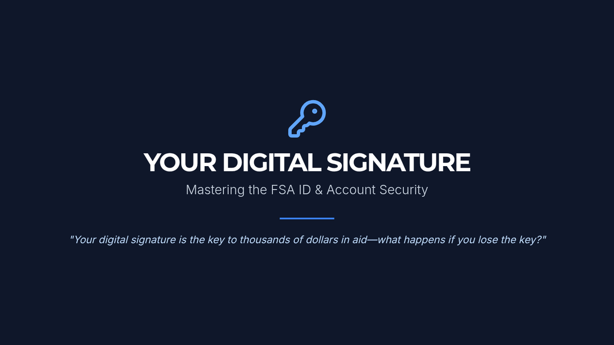 A comprehensive workshop series designed to prepare undergraduate students for the administrative and documentation requirements of the FAFSA, focusing on account security, status determination, and document organization.