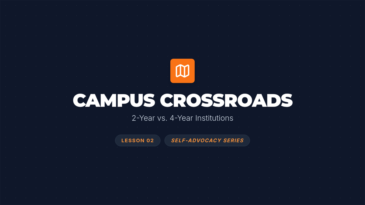A four-part series designed to empower high school students with self-advocacy skills and knowledge of post-secondary pathways. This sequence focuses on identifying personal needs, exploring institutional options, and navigating support systems.