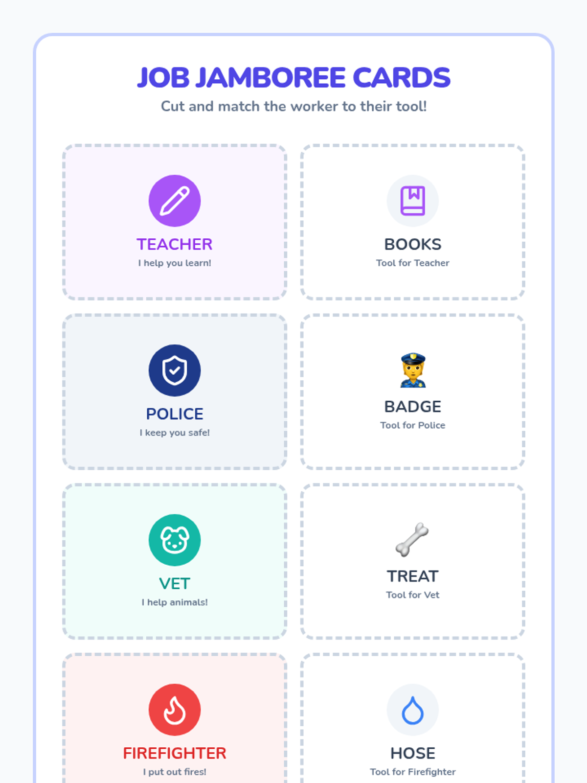 A foundational career exploration unit designed for Headstart and Pre-K students, focusing on identifying community helpers, matching tools to jobs, and imagining future roles.