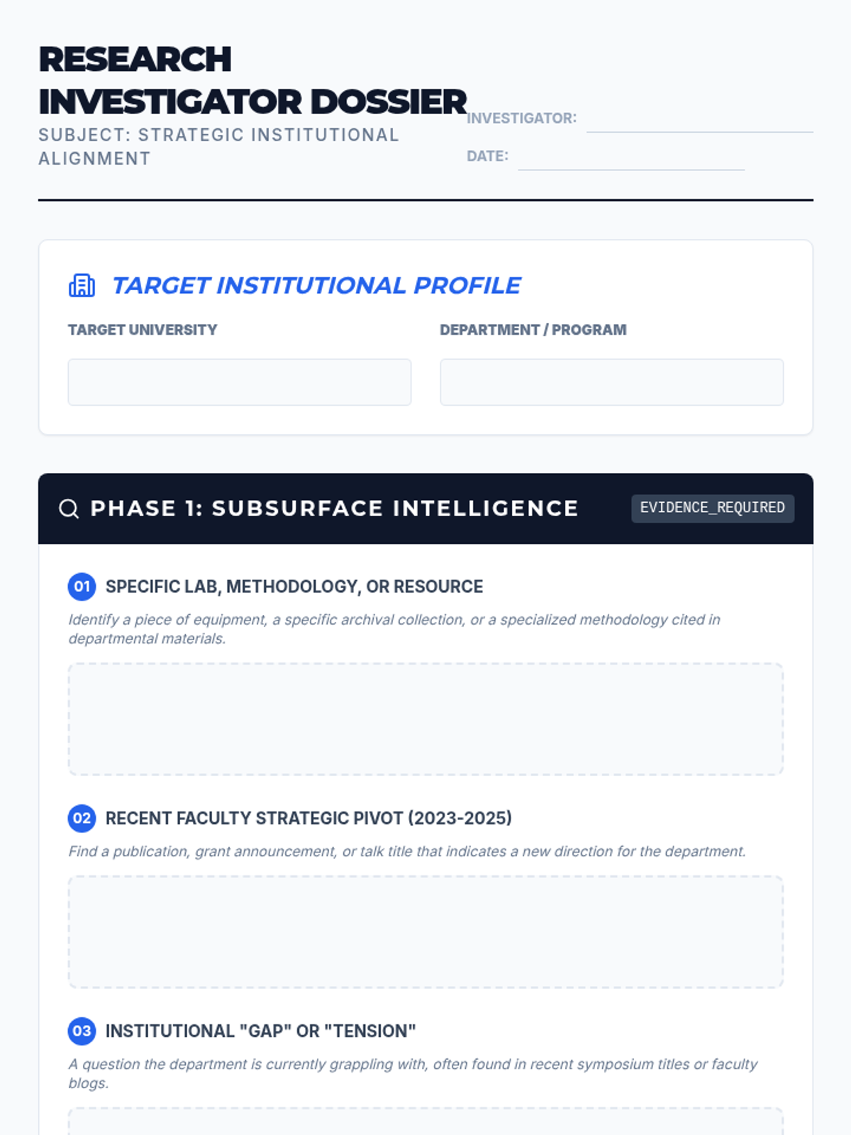 A comprehensive graduate-level sequence focused on the professional project management of fellowship and scholarship applications. Students learn to build tracking systems, manage recommenders strategically, curate funding-specific CVs, and ensure quality control for final submissions.