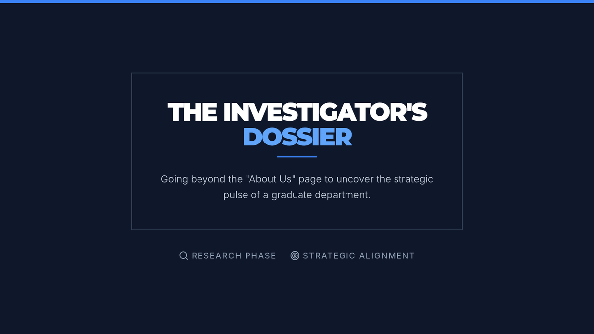 A comprehensive workshop sequence for graduate students applying to terminal degree programs (Ph.D., Ed.D., JD, MD) or competitive fellowships. This series shifts focus from basic qualifications to strategic narrative alignment and research fit.