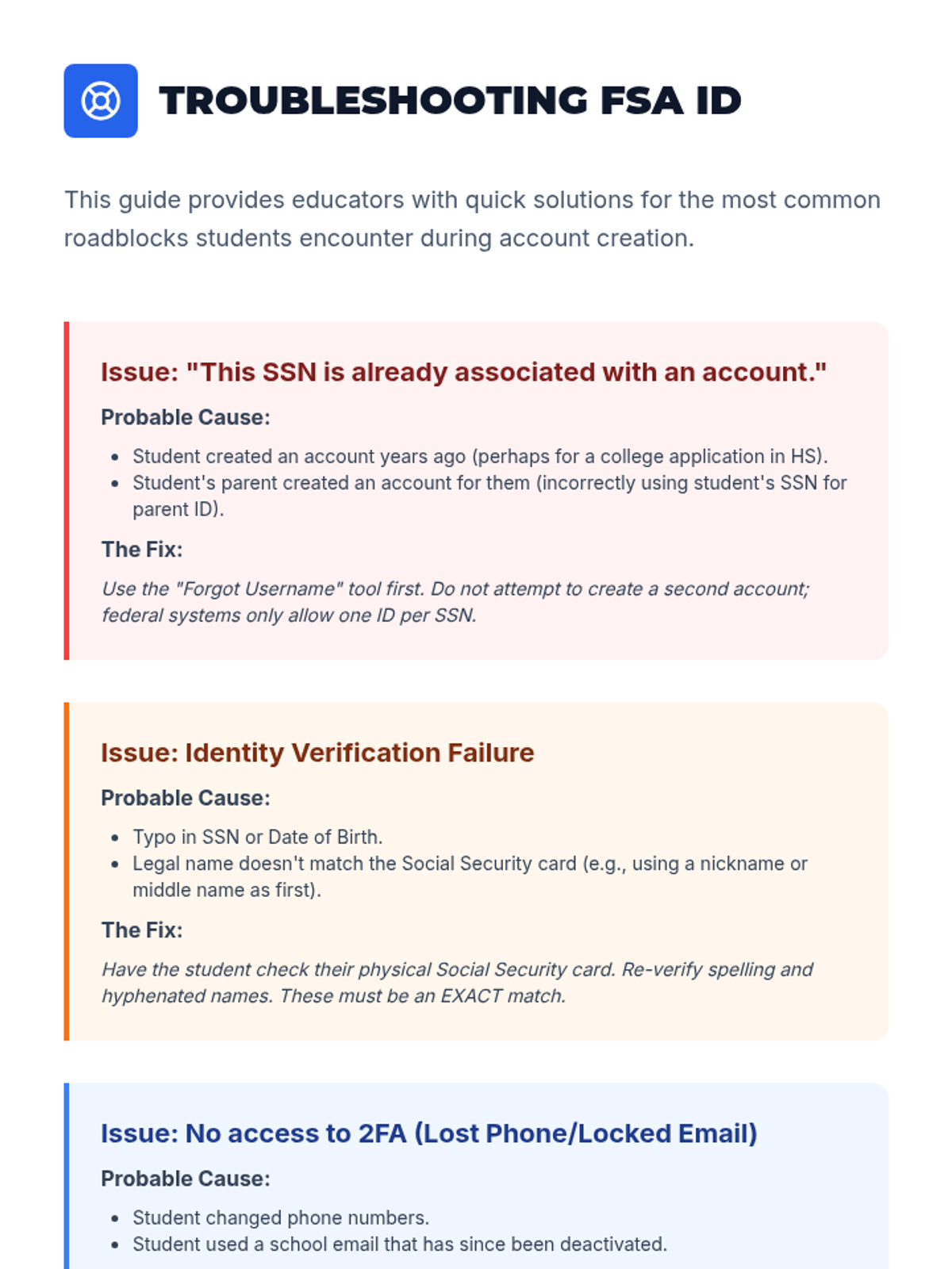 This workshop-style sequence focuses on the logistical preparation required before opening the FAFSA application. Students guide their families through the process of gathering necessary tax documents and successfully creating an FSA ID, emphasizing digital security and communication.