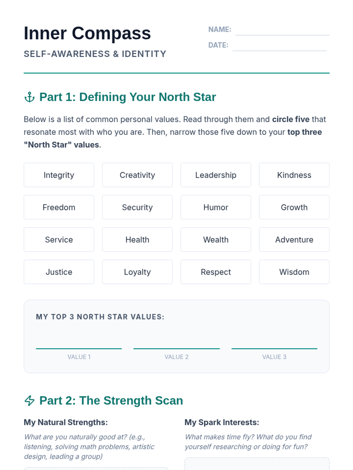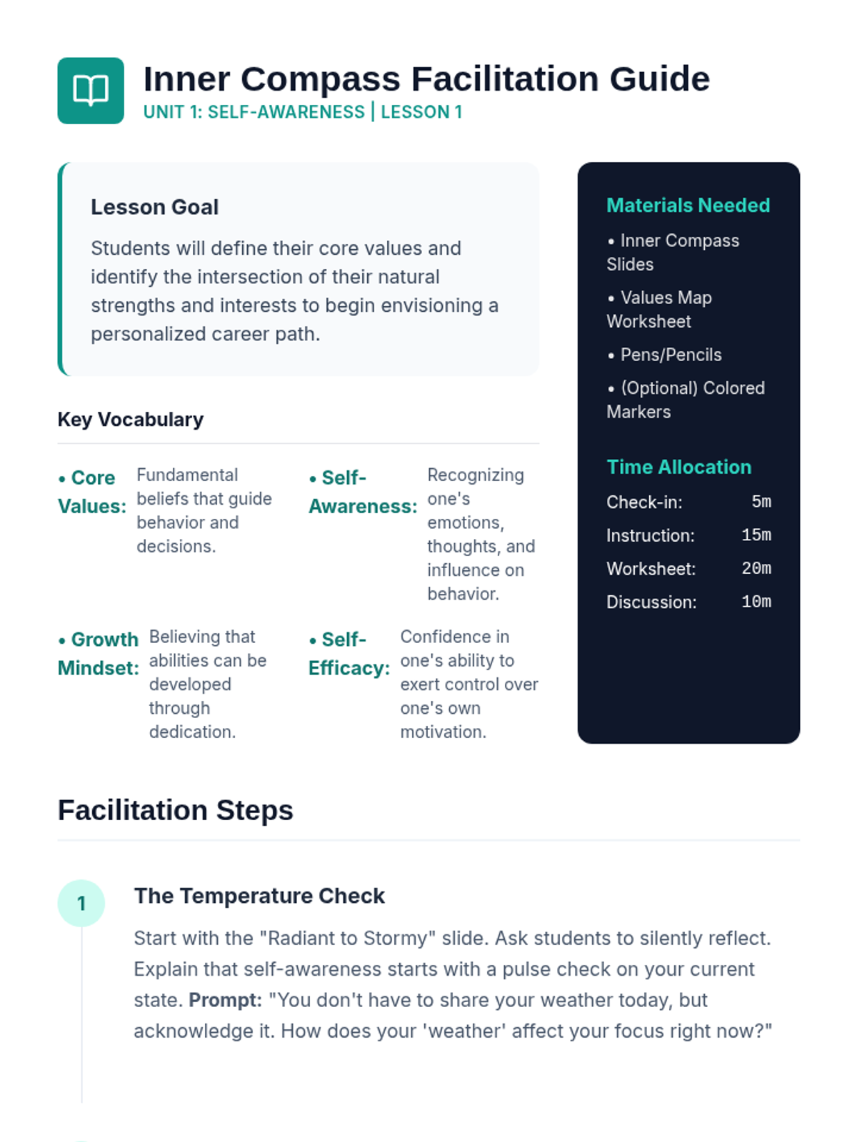 A comprehensive Social-Emotional Learning curriculum for high school students, integrating the five CASEL competencies with practical life skills like career exploration, resume building, and goal setting. This year-long program provides a roadmap for students to develop self-awareness, manage their futures, and build professional relationships.