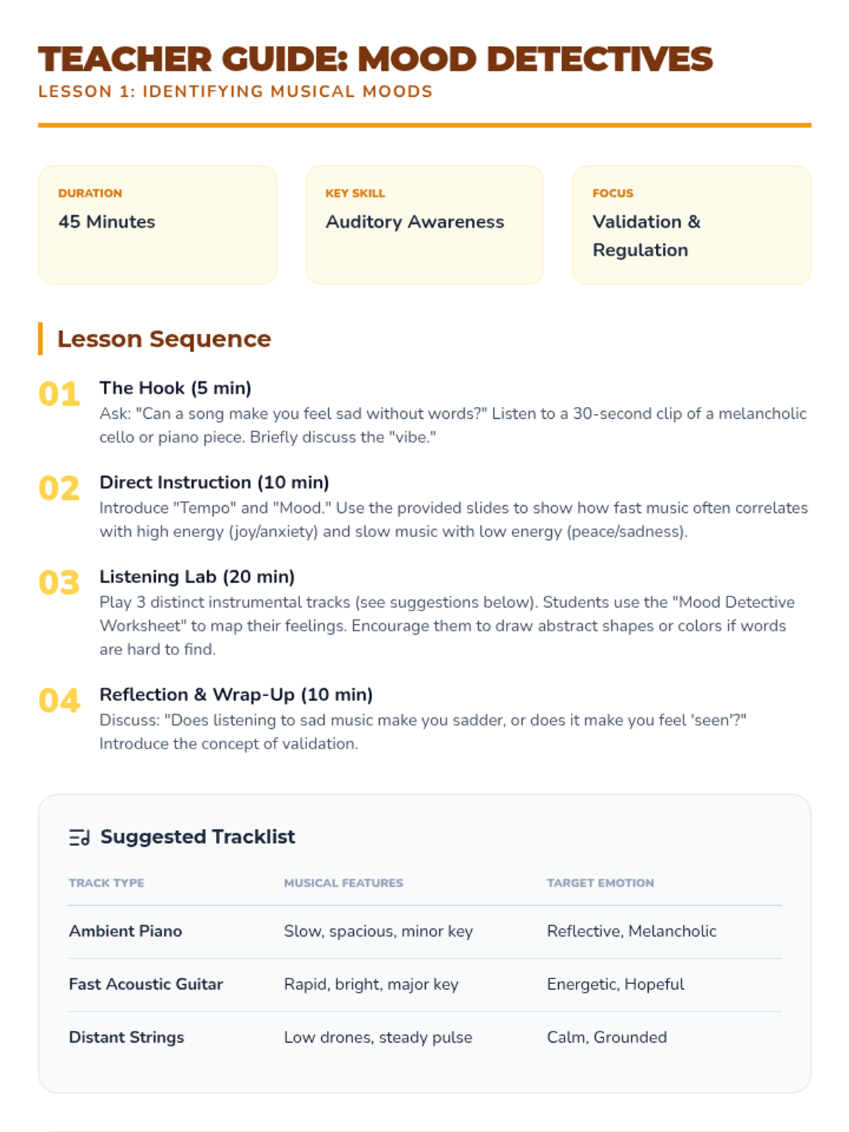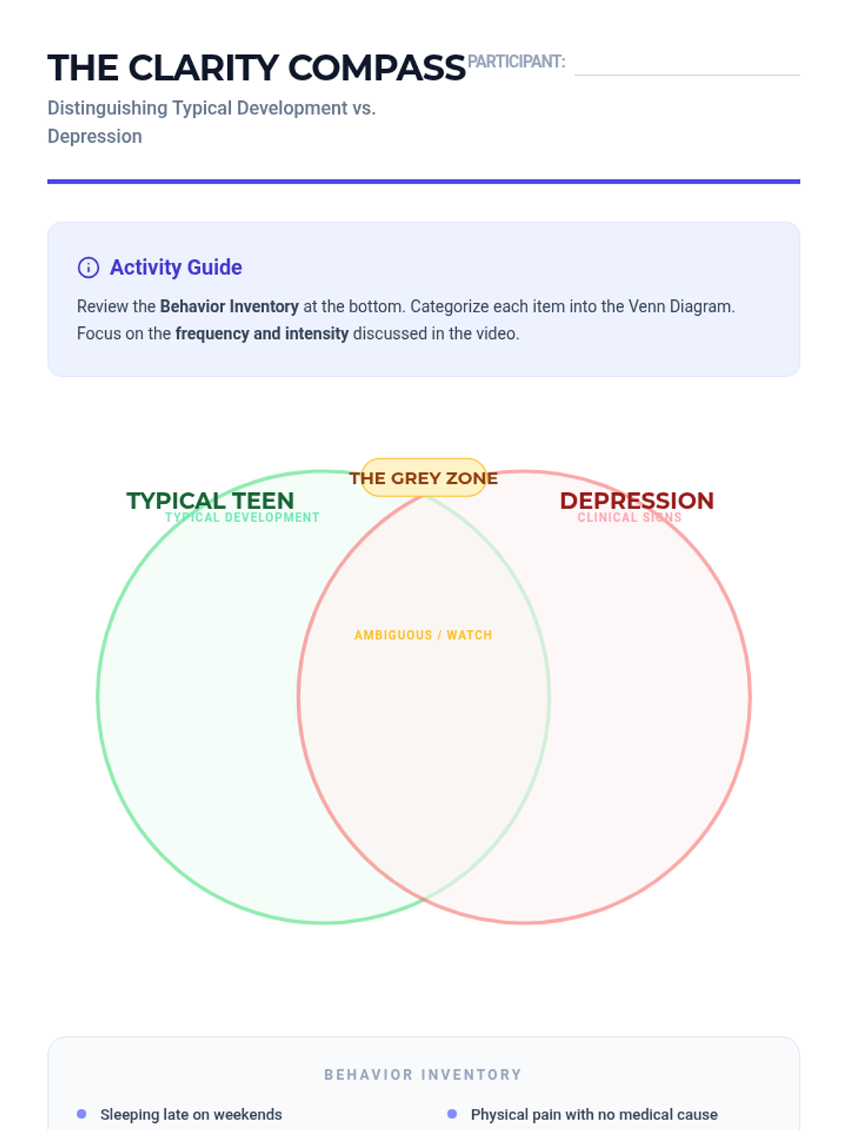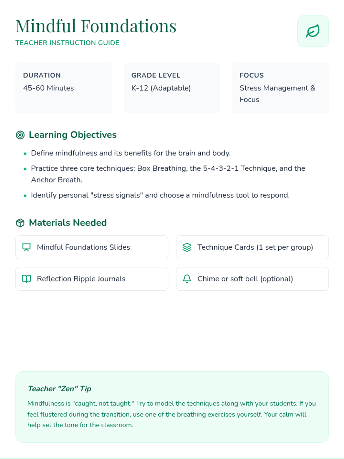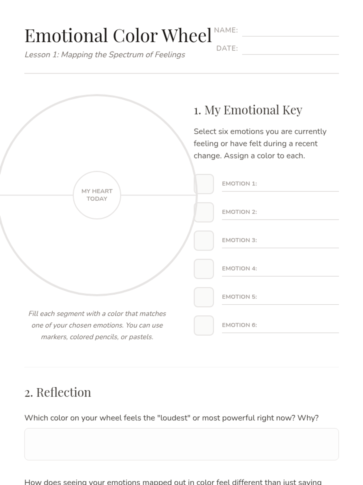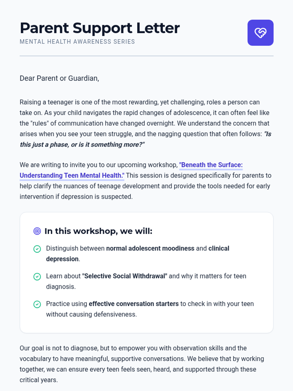 Identification of anxiety and depression symptoms alongside practical management strategies like progressive muscle relaxation and behavioral activation. Addresses the stages of grief through creative expression and routine-building to support emotional resilience.