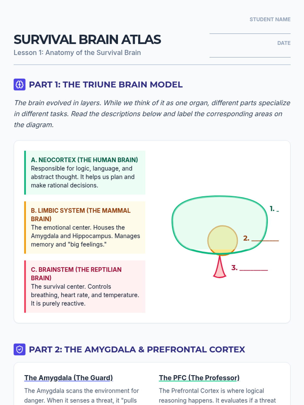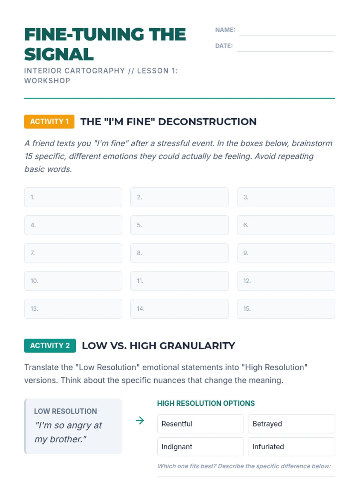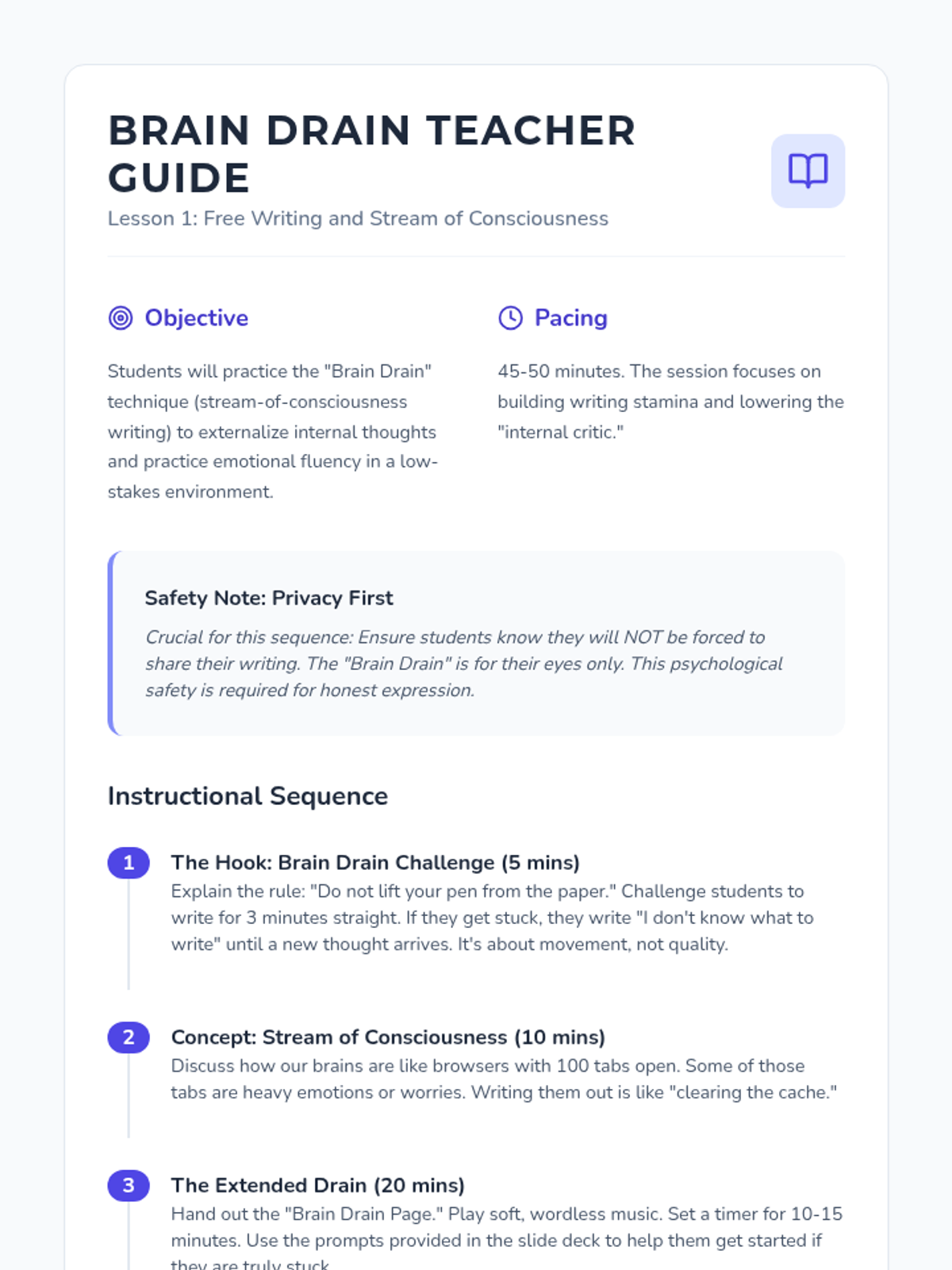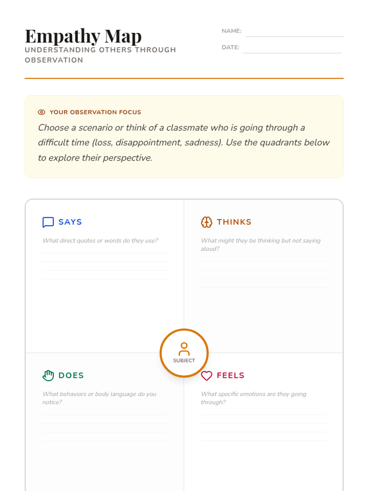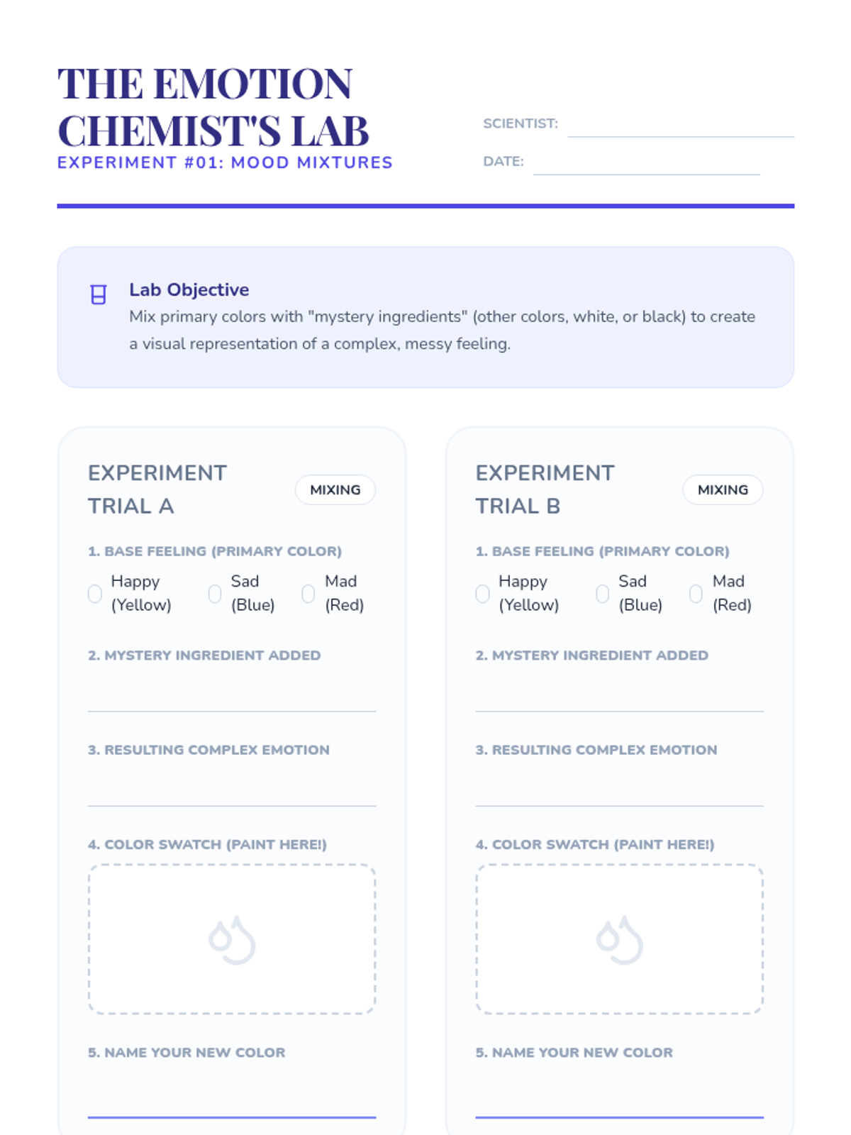 Identification of anxiety and depression symptoms alongside practical management strategies like progressive muscle relaxation and behavioral activation. Addresses the stages of grief through creative expression and routine-building to support emotional resilience.