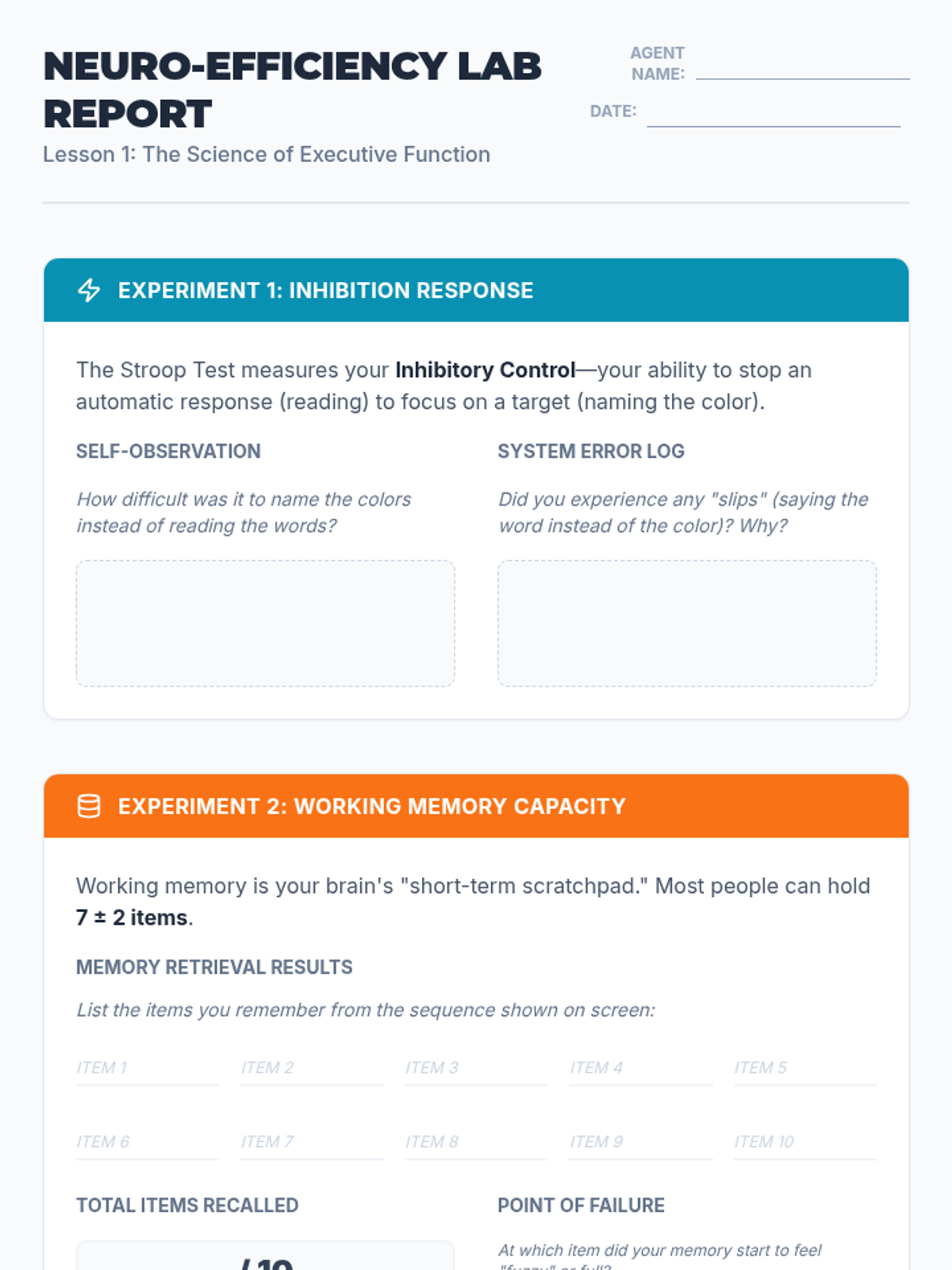 This sequence guides 8th-grade students through the engineering of their physical and digital environments to support executive function. Students move from understanding the neurological 'why' of organization to building a personalized operating manual for their own workflow optimization.