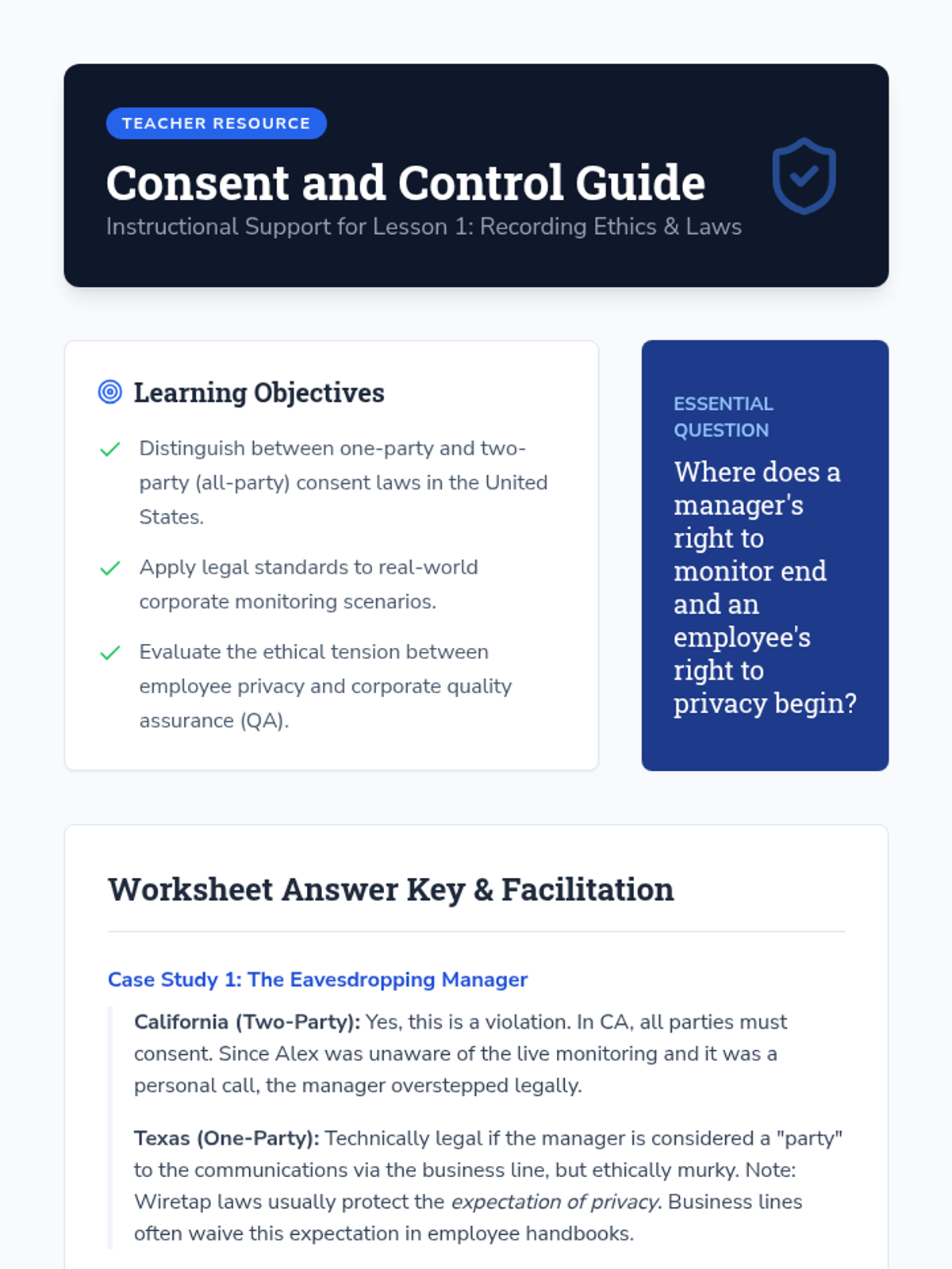 A high-level sequence for 11th graders focusing on the legal, ethical, and operational standards of professional telecommunications through the lens of quality assurance and management.