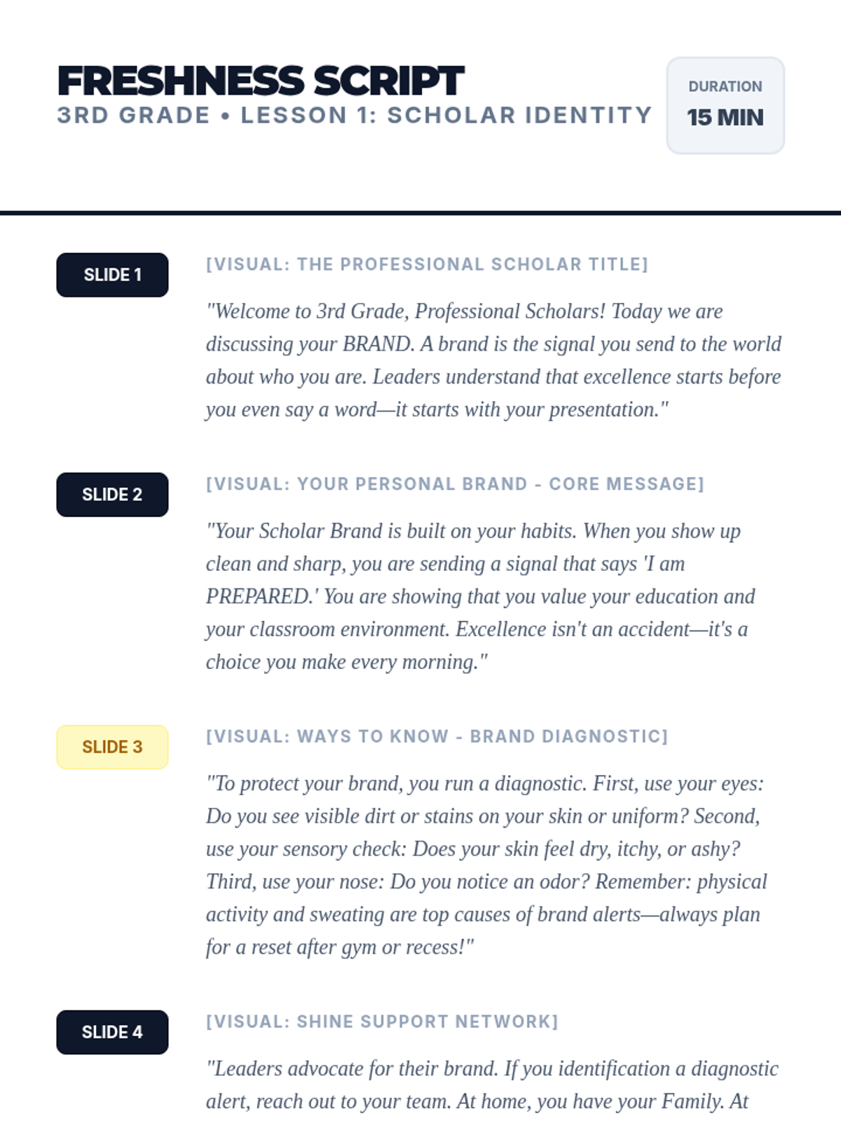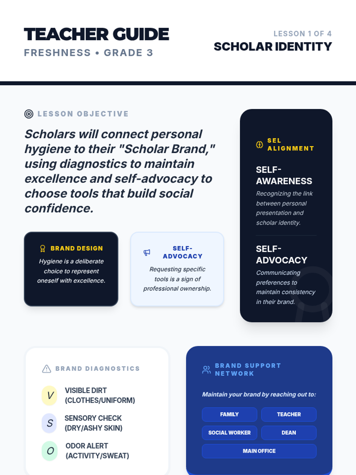 A comprehensive SEL-integrated hygiene curriculum for elementary scholars (K-4), focusing on self-awareness, social impact, and personal responsibility through the lens of a 'Glow Up'.