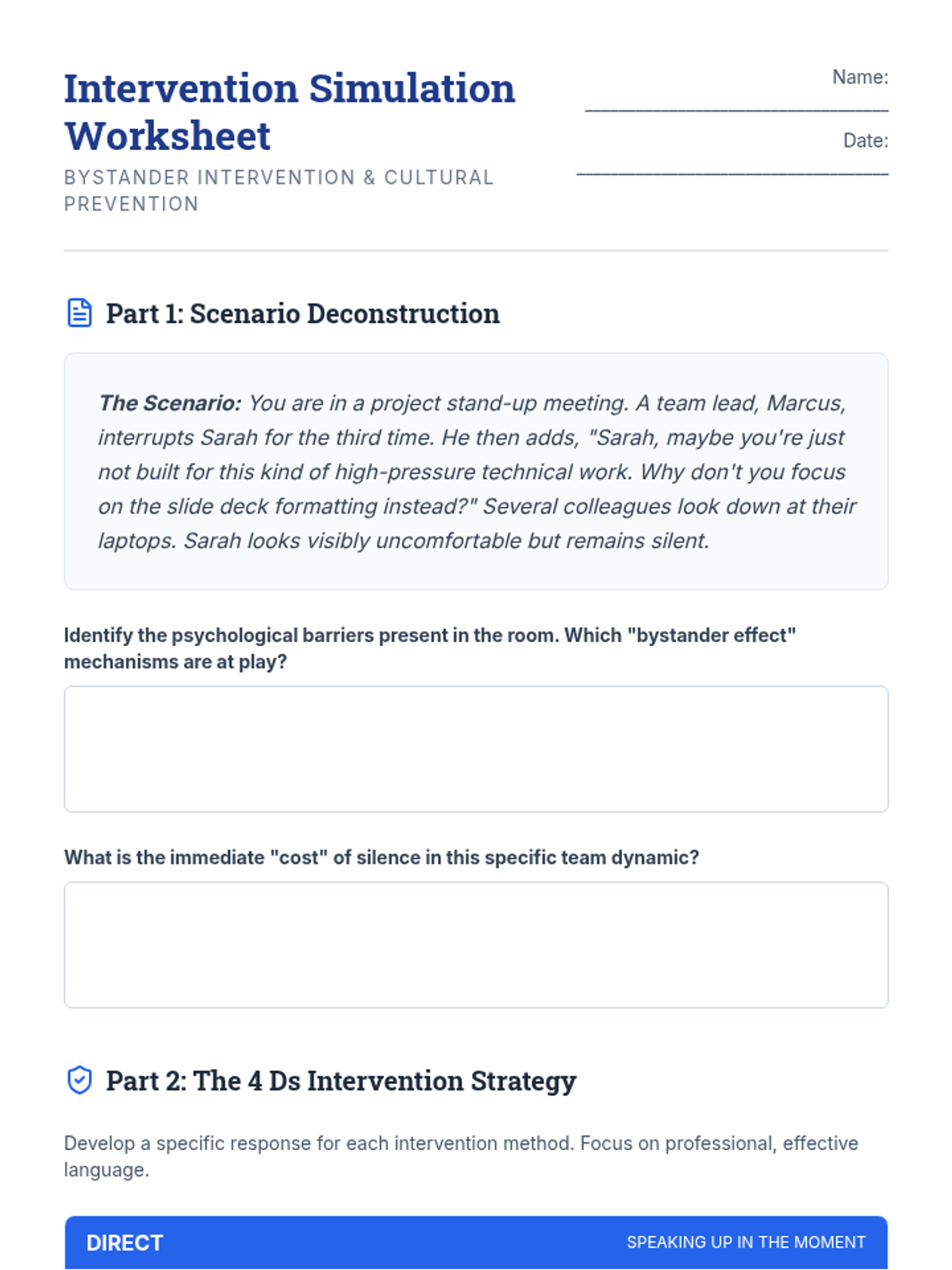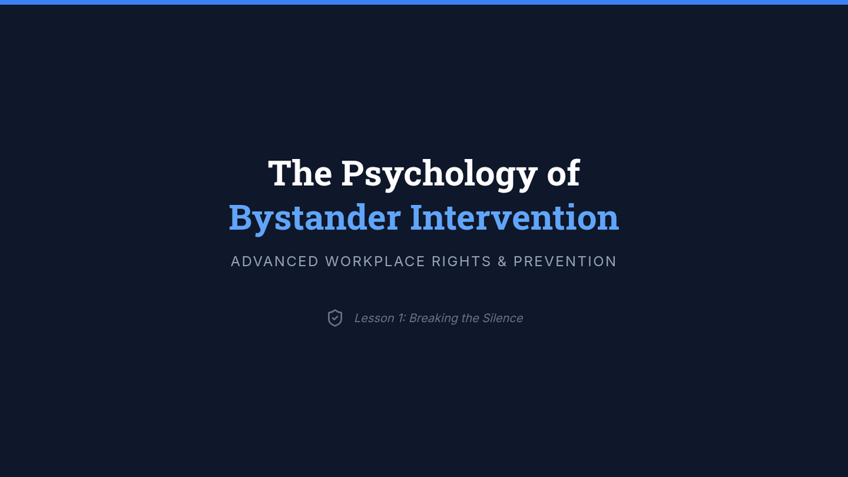 A graduate-level exploration of proactive workplace harassment prevention, focusing on bystander intervention, organizational policy design, leadership accountability, and cultural measurement to foster psychological safety.