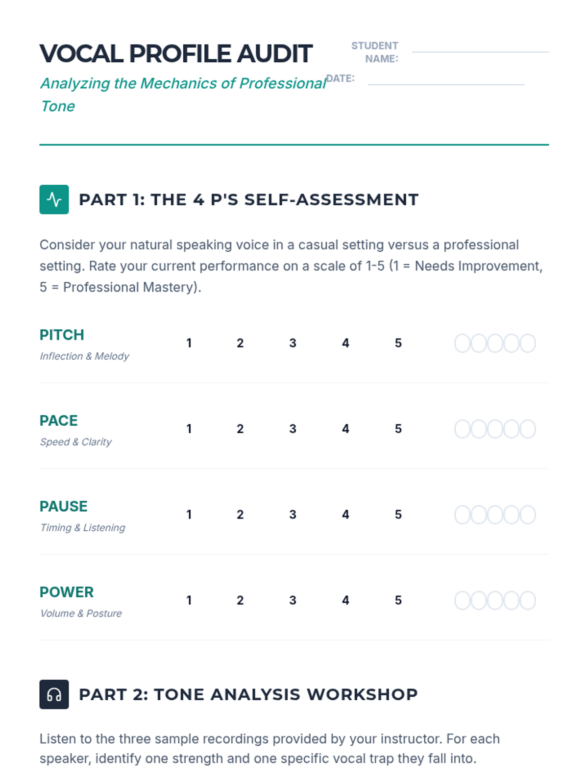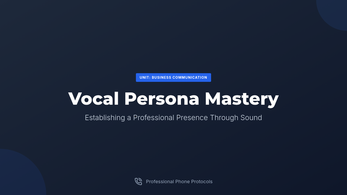 This sequence establishes the foundational skills required for professional verbal communication, focusing specifically on tone, volume, and clarity in the absence of visual cues. Students practice enunciation, reducing filler words, and mastering the structure of professional phone interactions through workshops and simulations.