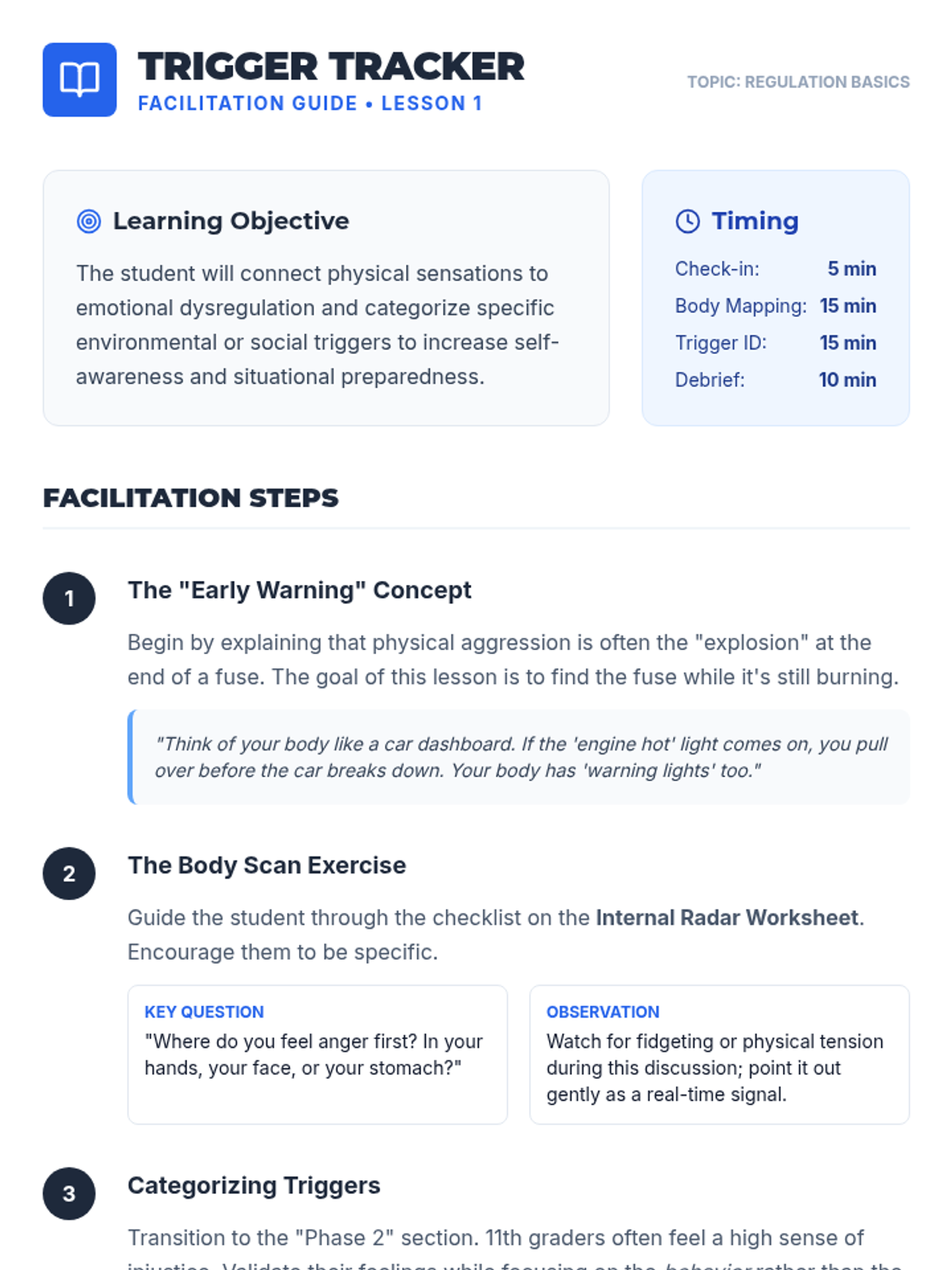 A comprehensive sequence of lessons designed for high school students managing re-entry and school-based anxiety. The curriculum focuses on physical and psychological safety, self-regulation tools, self-advocacy skills, and navigating social peer dynamics.